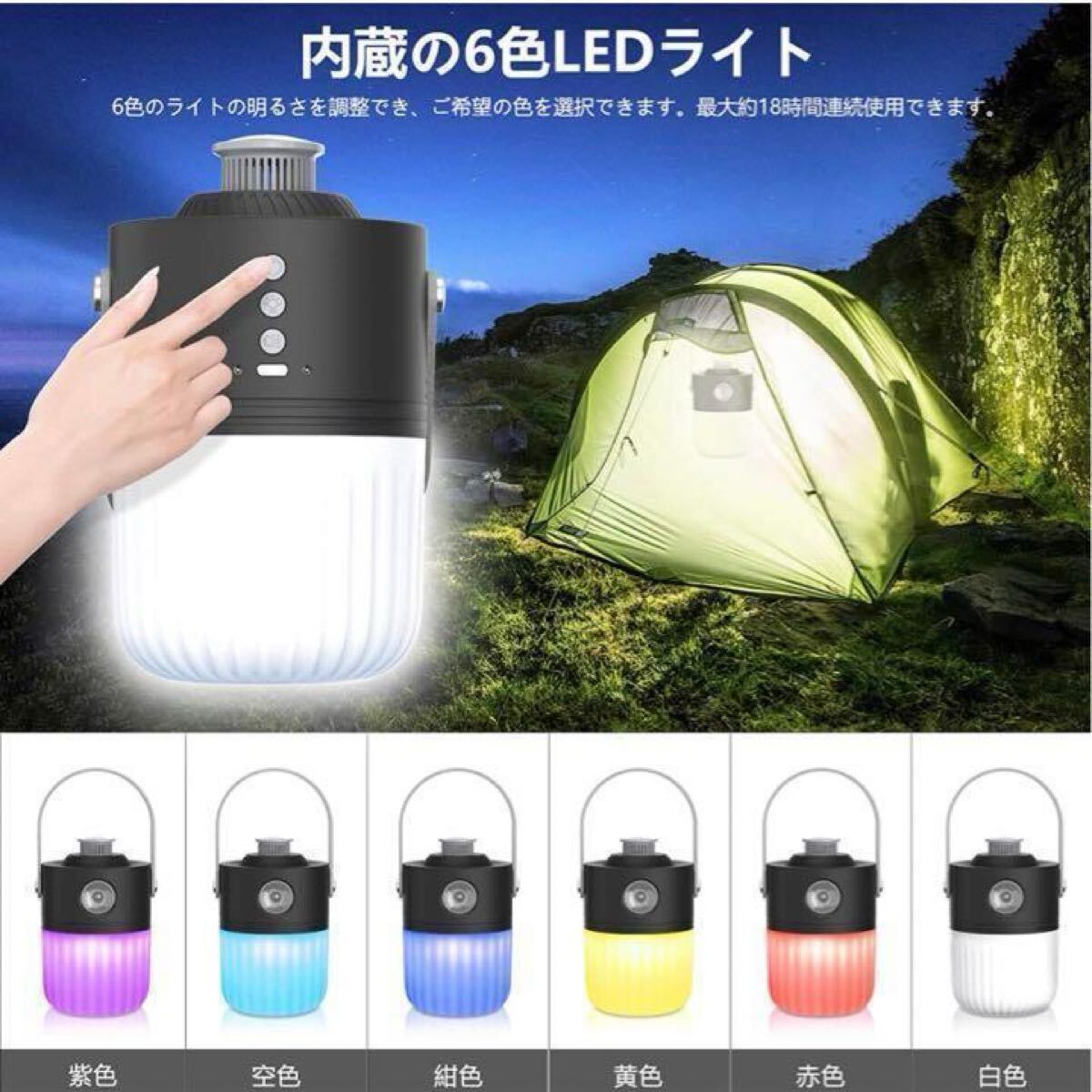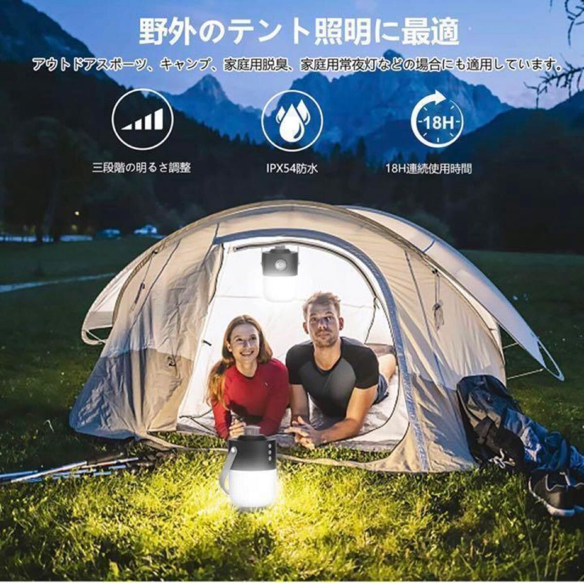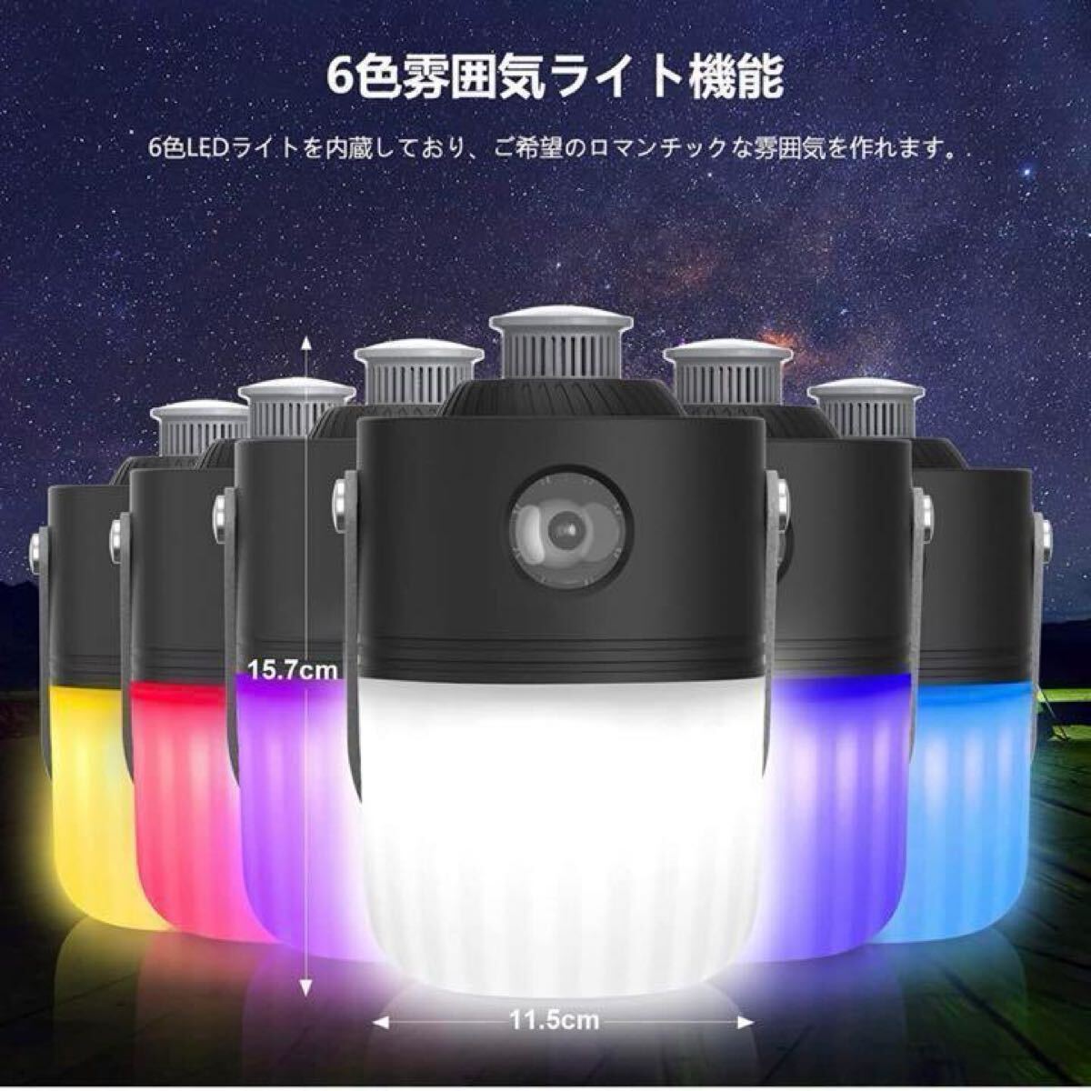 懐中電灯、アロマランプ、6色雰囲気ランプの3つの機能を備え、3-in-1コンパクト設計されるLEDランタンです。シェルは環境にやさしく、耐摩耗性、耐落下性、耐圧性、耐熱性の高級プラスチック素材で作られています。防水性能IPX54で、いかなる角度からの水しぶきも保護できます。
