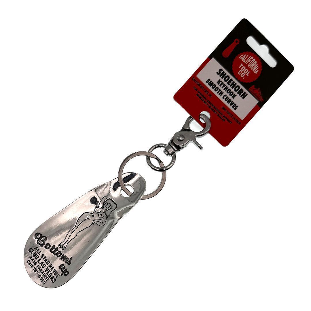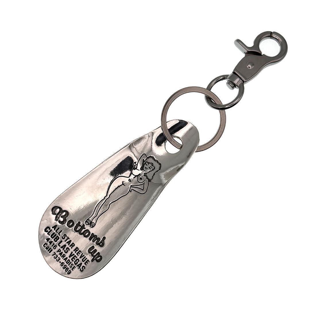 アメリカンビンテージな雰囲気漂うシューホーン(靴ベラ)キーホルダーです。風合いをお楽しみいただけるようビンテージの靴ベラ同様の亜鉛合金素材を使用しております。アメリカンなデザイン入りでキーホルダーとして携帯出来、出先での靴の脱ぎ履きに大変重宝します。キーホルダーとしてデニムの腰からぶら下げてもアメリカンレトロな雰囲気でおしゃれにキマります。店頭での陳列、商品展開もしやすいヘッダー付きです。 商品本体/縦 90mm、幅 40mm、フック部分長さ 50mm、Wリング 30mm 他のデザインも出品しています。