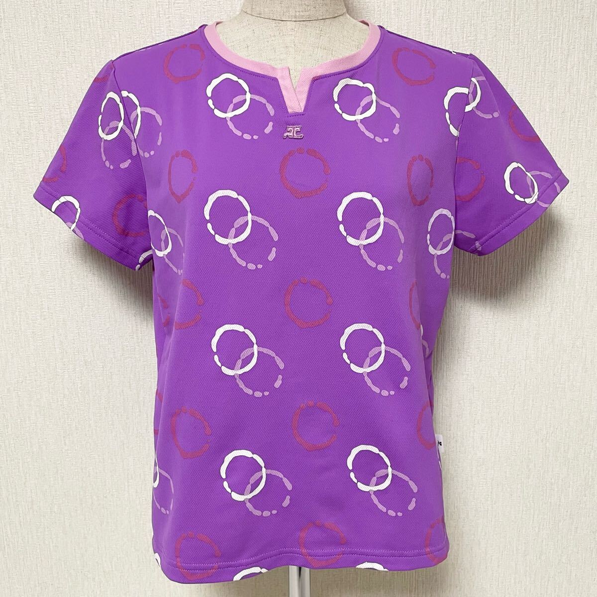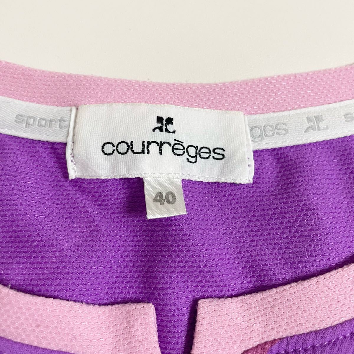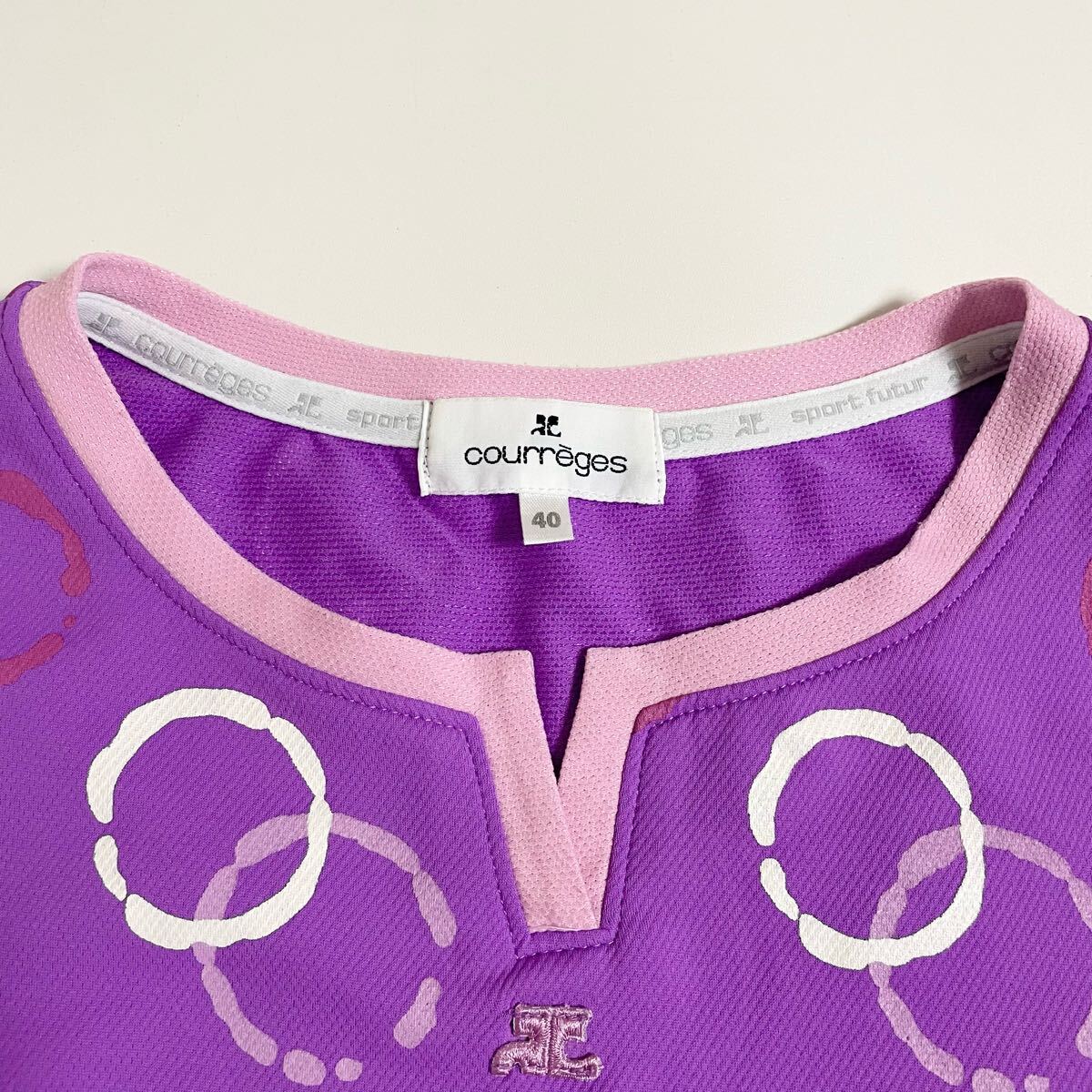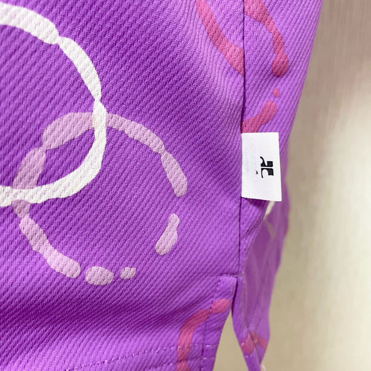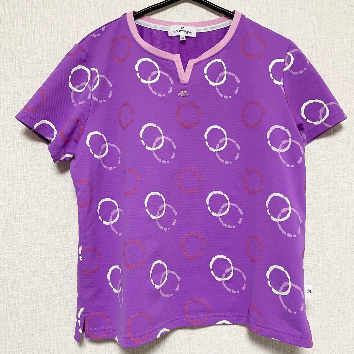 即決☆courreges クレージュ ロゴ Tシャツ 半袖 パープル カットソー 40 美品 L