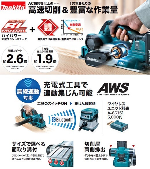マキタ KP181DZ (本体のみ)(バッテリ・充電器別売) 82mm 充電式カンナ 18V