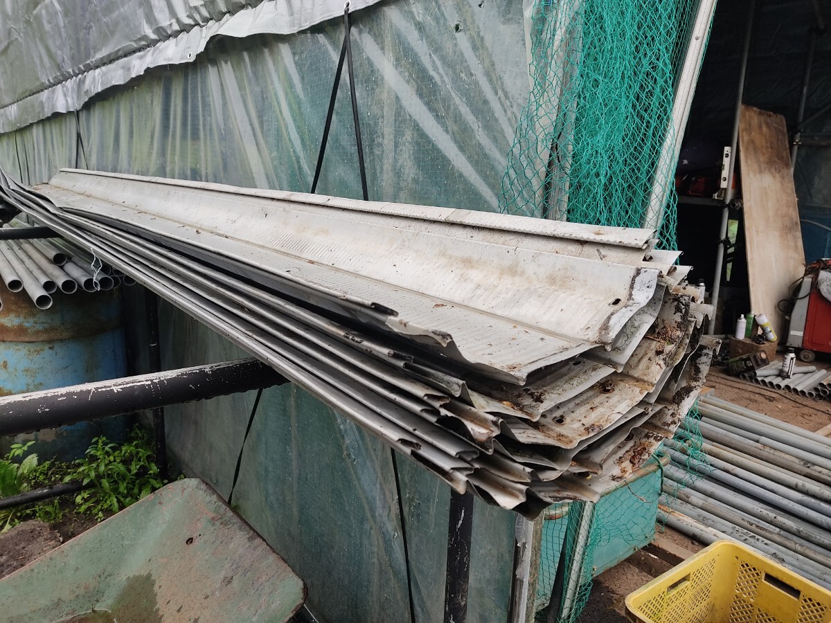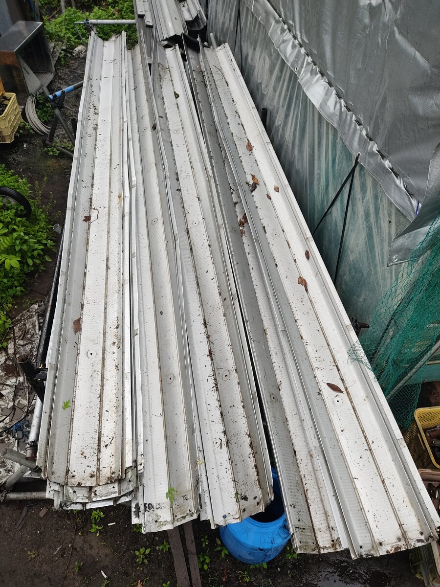 アイボルトは錆だらけの為、外して新しい新品アイボルト28個7枚分の提供になります。レインペットはまだまだ使えますが、部分的に変形、アルミテープの剥がし跡等あります。神経質な方は入札控えて下さい。新品だとアイボルト無し4m1枚15000円、排水ダクト1個6000円前後、アイボルト1個400~640円位してます。アイボルトは地元の資材屋からまとめ買いした物の為、ネットショップよりは価格が安いかと思います。