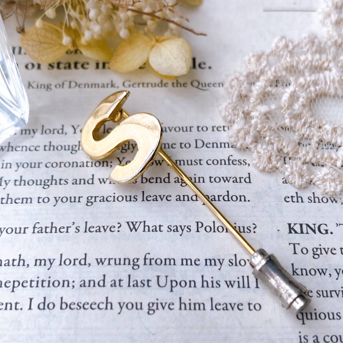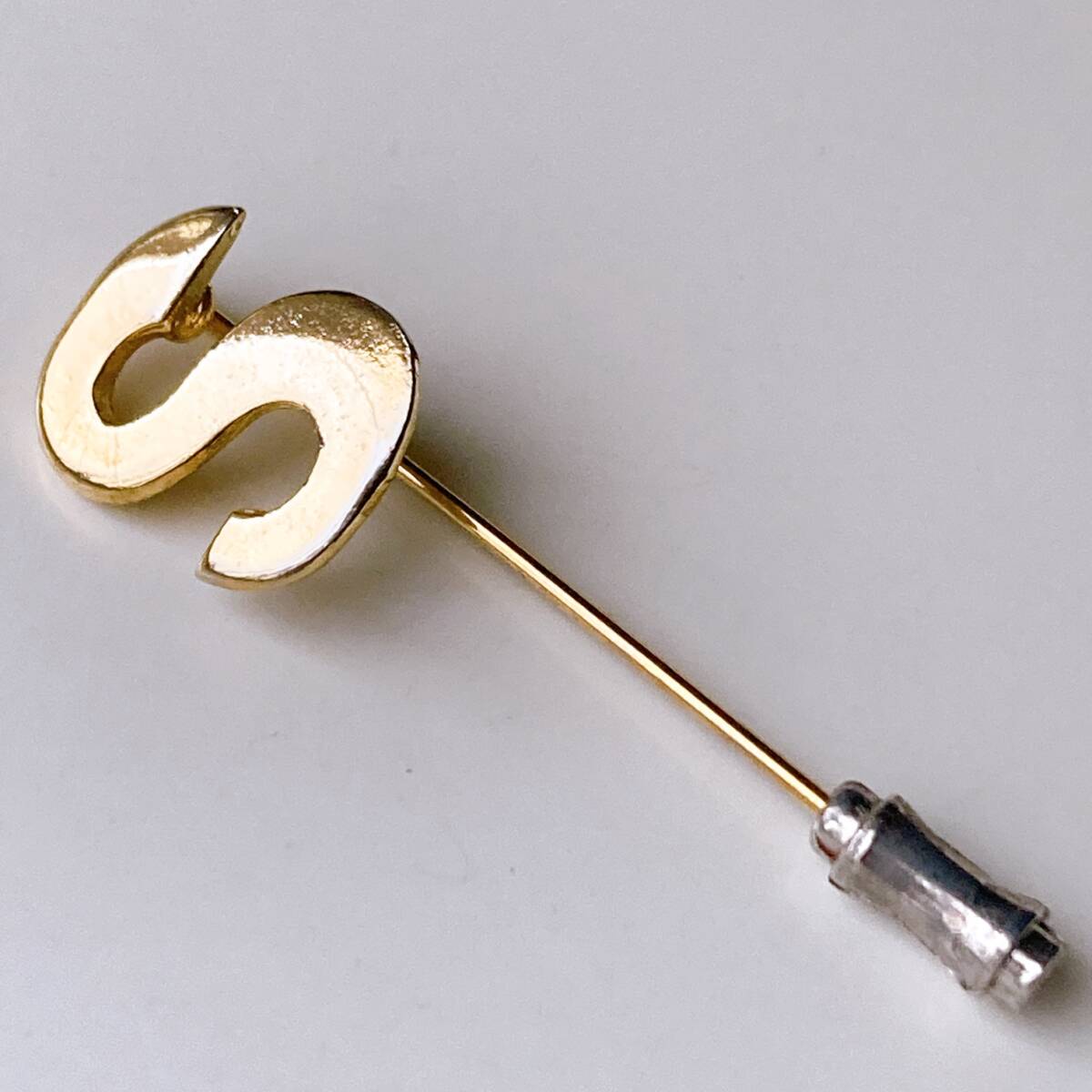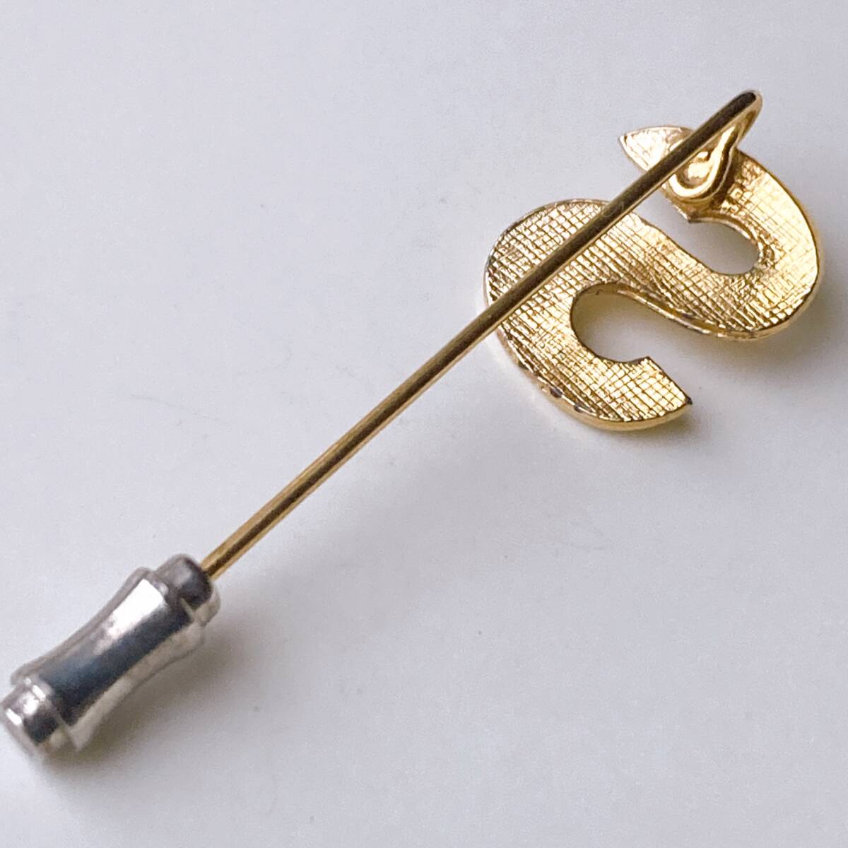 ヴィンテージピンブローチ ロゴ アルファベット 「S」 ゴールドカラー 美品☆vintage jewelry accessoriesR0489