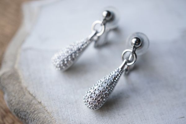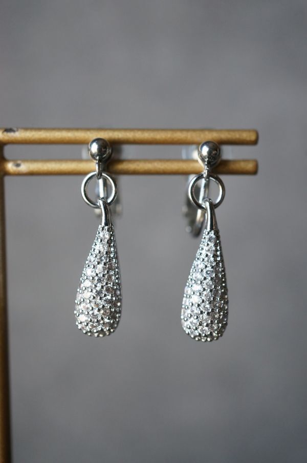 イヤリング 549 マイクロパヴェ キュービックジルコニアチャームのイヤリング サージカルステンレス金属アレルギー対応金具使用