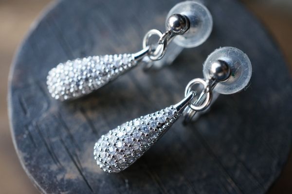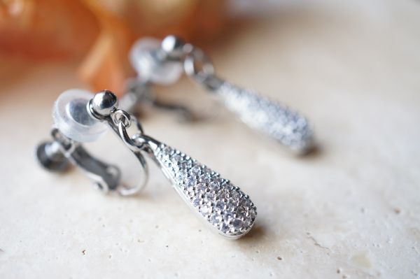 ねじバネ式のイヤリングなので、好みに合わせて留め金具の強弱調整出来ます。