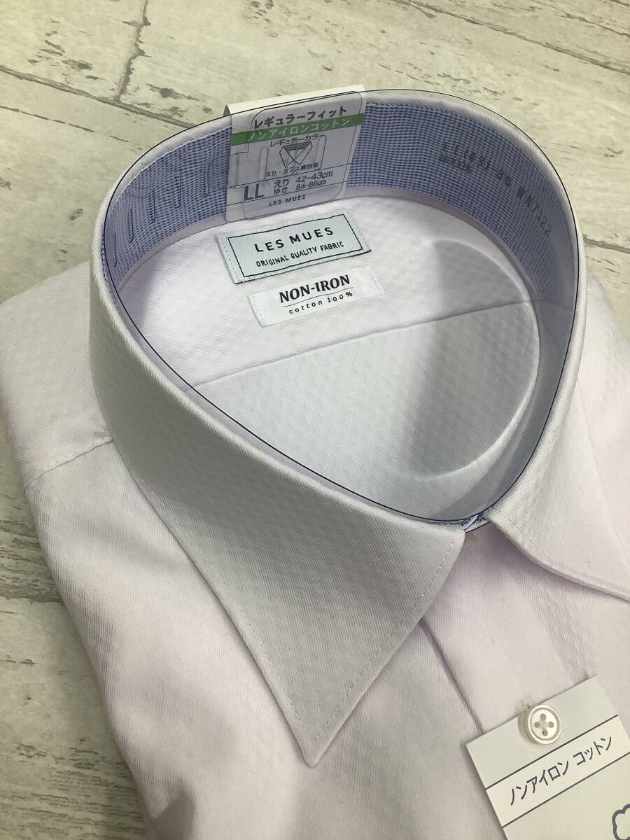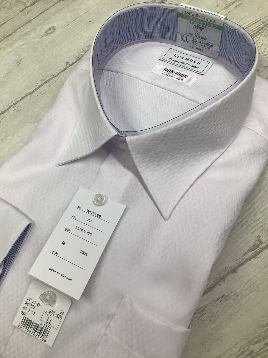 ★43-86 LLサイズ 定価4,990円の品★綿100% レギュラーカラードレスシャツ★ノンアイロンコットン ★ピンクドビー柄