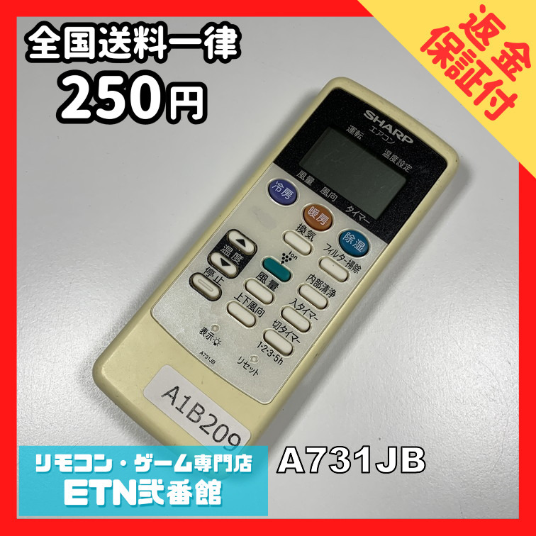 A1B209 【送料250円】エアコン リモコン / SHARP シャープ A731JB 動作確認済み★即発送★