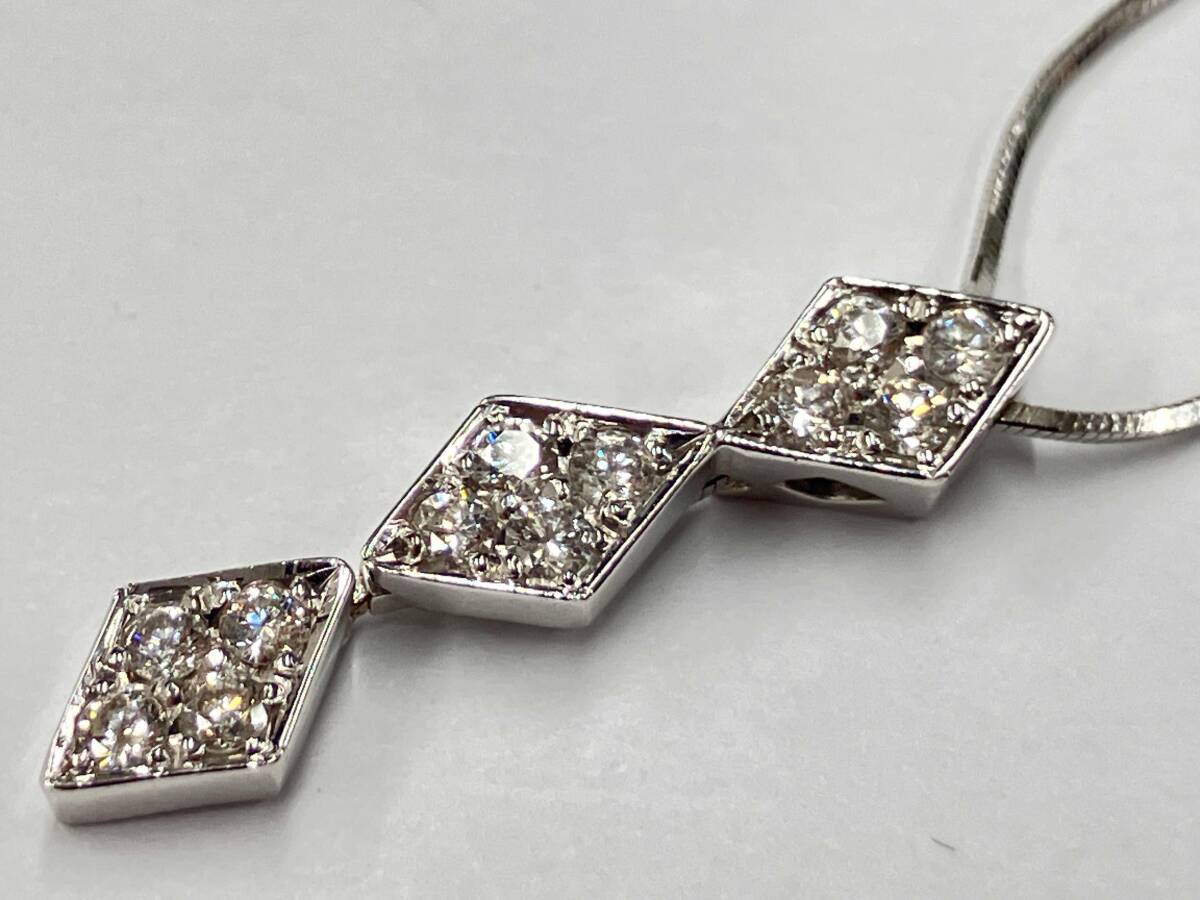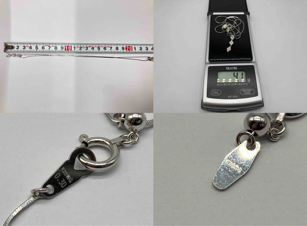 カラット数:0.30ct チェーン全長:約 44cm 高さ:約 2.7cm 幅:約 0.5cm 総重量:約 4.1g サイズ表記(~cm位)は目安です。ブランドやデザインによって多少前後する場合がございます。予めご了承の上ご注文ください。 ![]() | ||||||