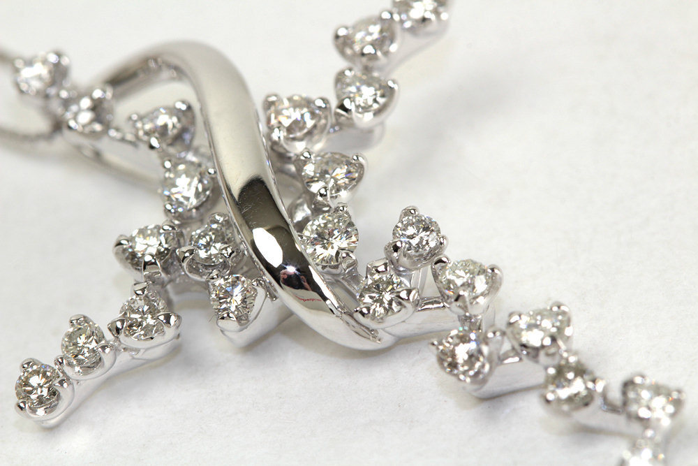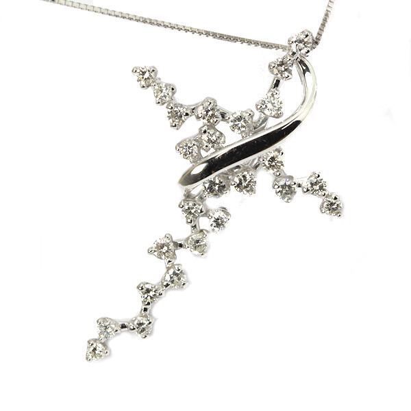 ダイヤモンド ネックレス クロス 1.27ct K18WG 十字架 18金 ホワイトゴールド 83472