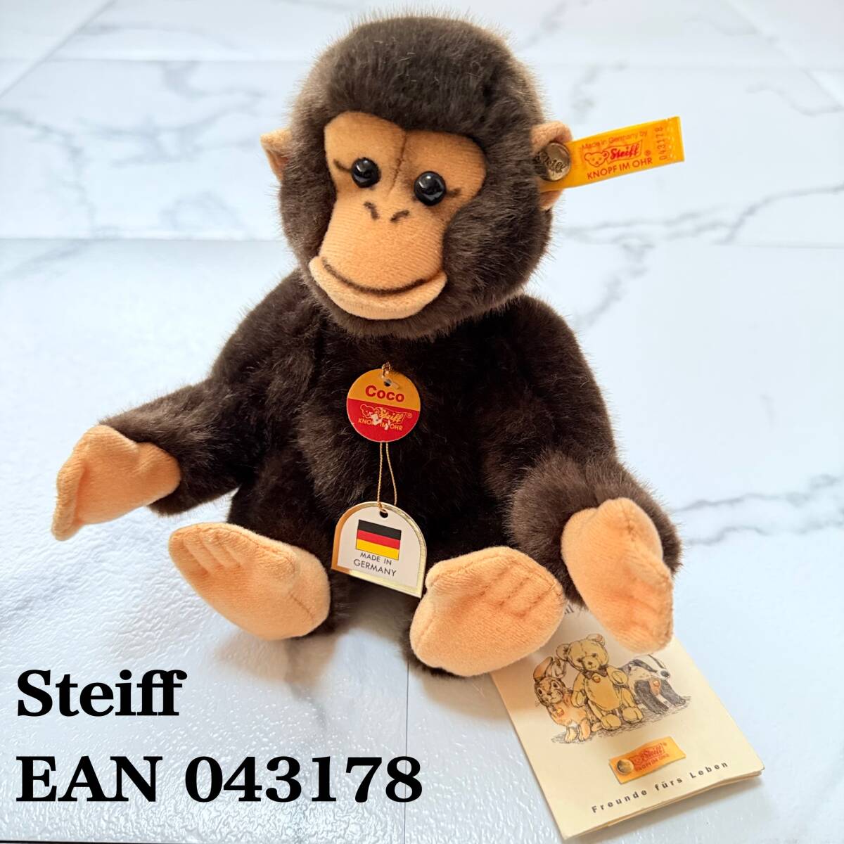 ヴィンテージ シュタイフ モンキー ココ チンパンジー Vintage Steiff Monkey Coco EAN 043178 ドイツ製 希少 レアになります。 ★Monkey Coco Chimpanzee ★Year 1995-2002 ★EAN 043178 ★サイズH15㎝ W16㎝ D12cm 多少の誤差はご了承下さい。 ★状態 中古 目立つダメージ汚れなく、良い状態です。 中古品もご理解の上、ご検討頂けましたら幸いです。 | ||
