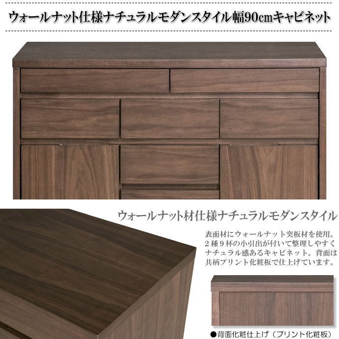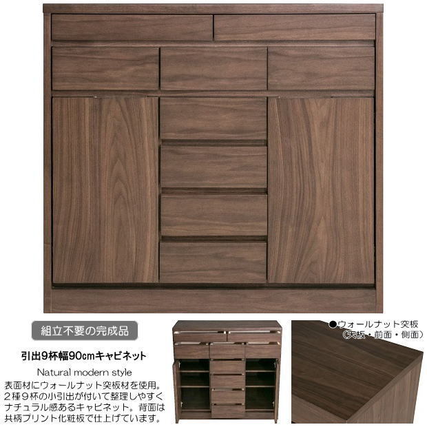 | 【商品名】 | ウォールナット仕様ナチュラルモダンスタイルの引出9杯幅90cmキャビネット | |