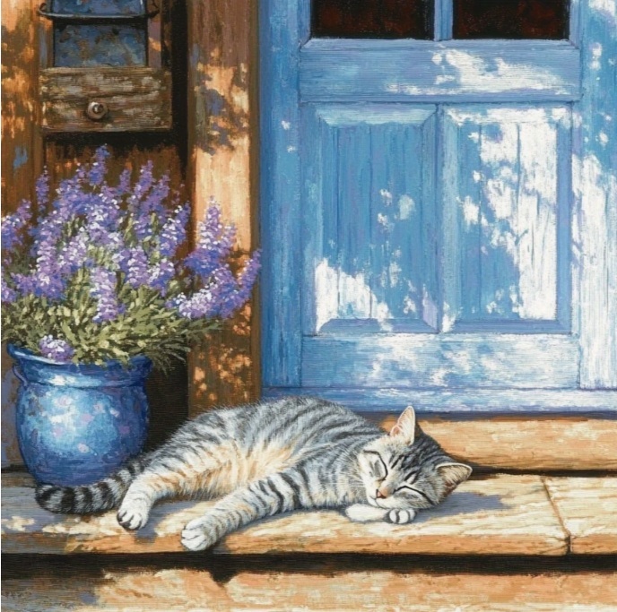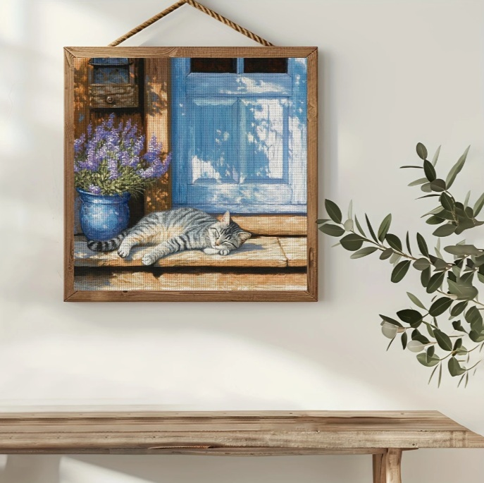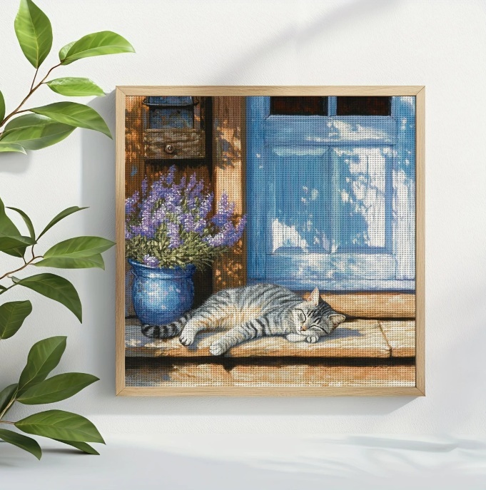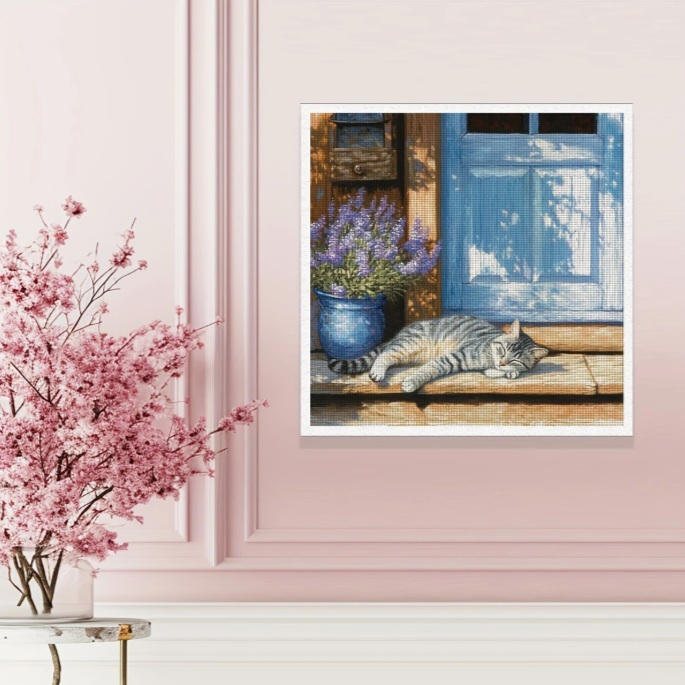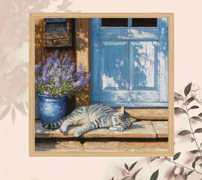 商品名 | ◆クロスステッチ キット◆ 猫 花 扉 24933 14CT 40×40cm |