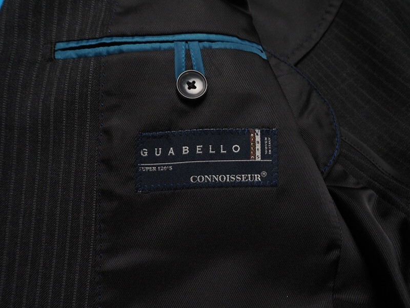 AMFステッチ、ラペル毛芯など、百貨店向けならではの上級仕立てで仕上げられております。 ファブリックはイタリア随一の伝統を誇るGUABELLO社のウール100%生地を使用。