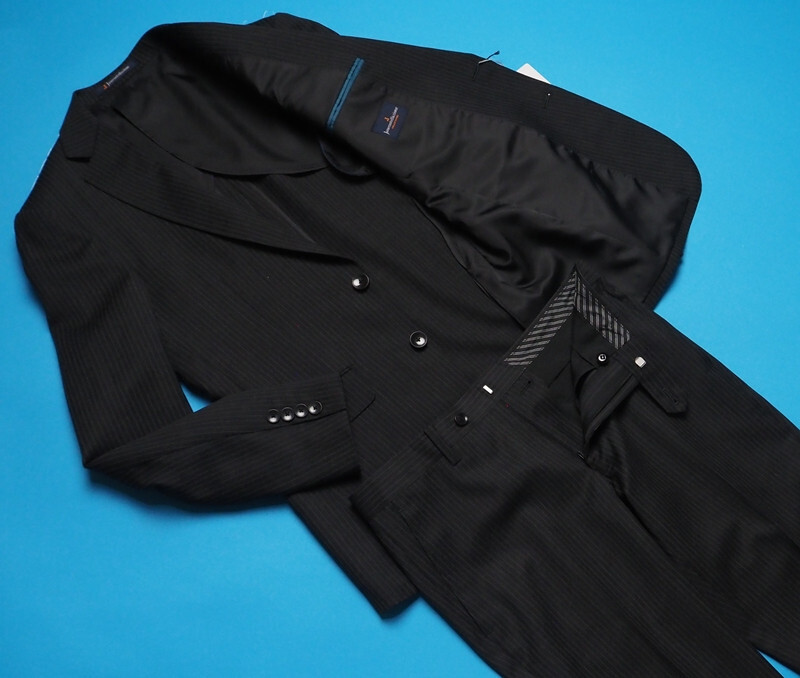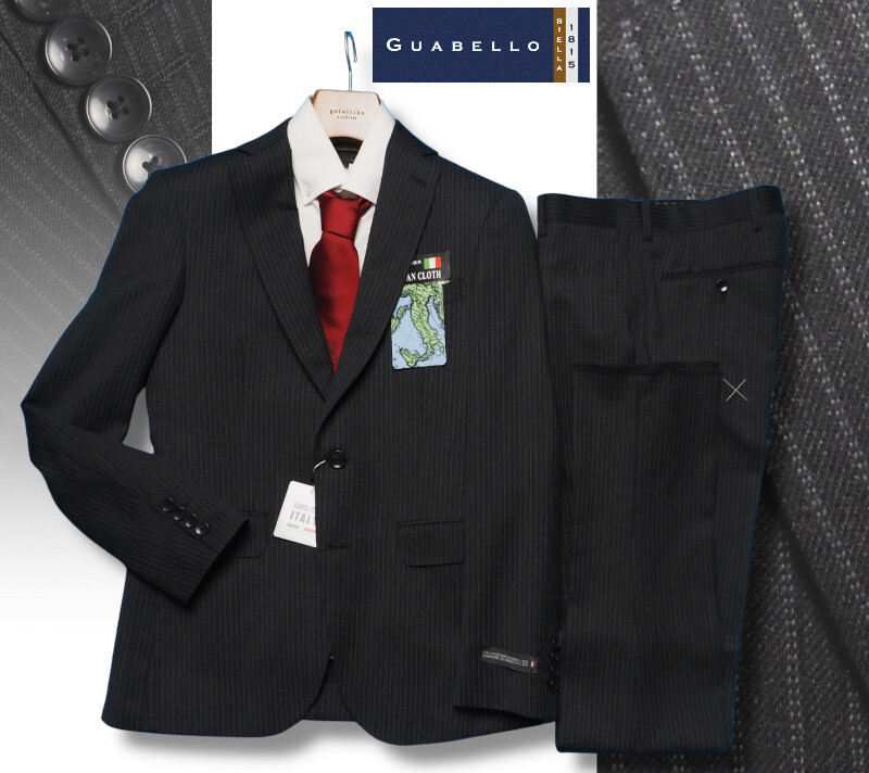 新品9.7万円 大手百貨店扱い 日本製 春秋『GUABELLO グアベロ イタリア製生地』Super120'S ストライプ スーツY5濃灰(C) 1708271