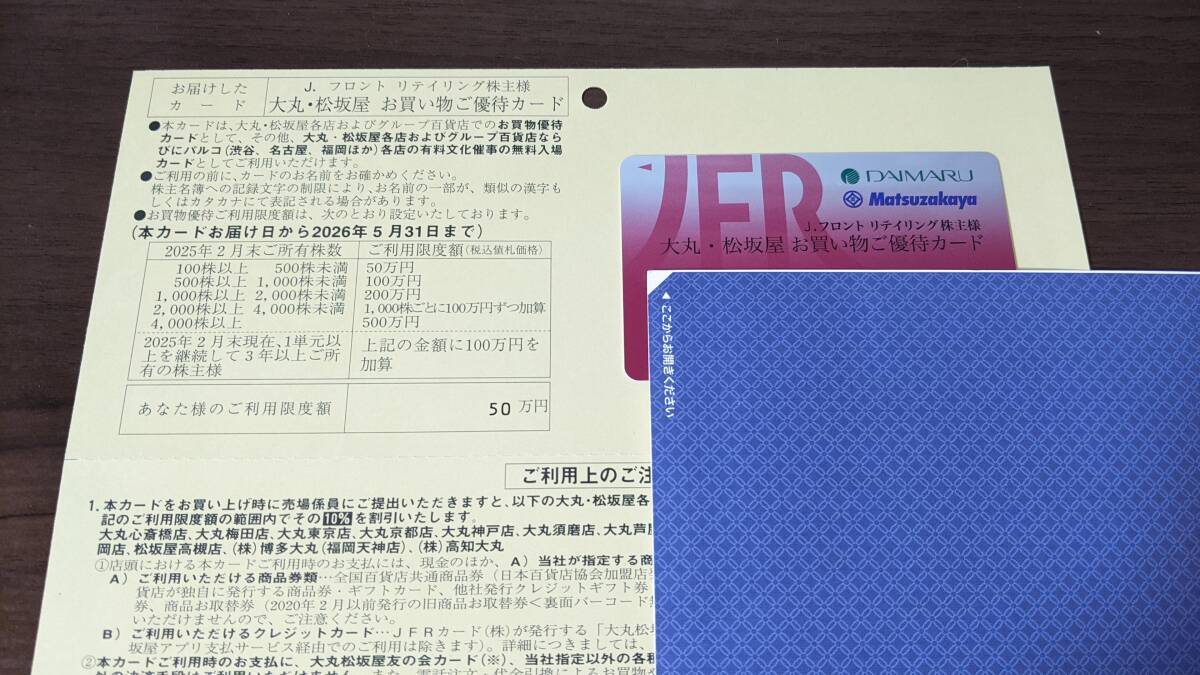 【送料無料】 Jフロントリテイリング 株主優待券 大丸・松坂屋 株主様お買い物ご優待カード10%割引 限度額50万円 男性名義