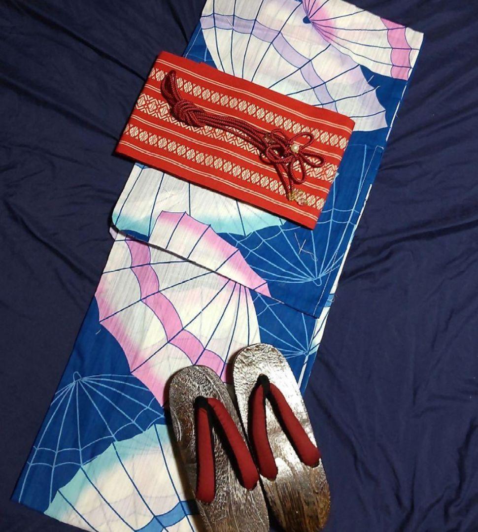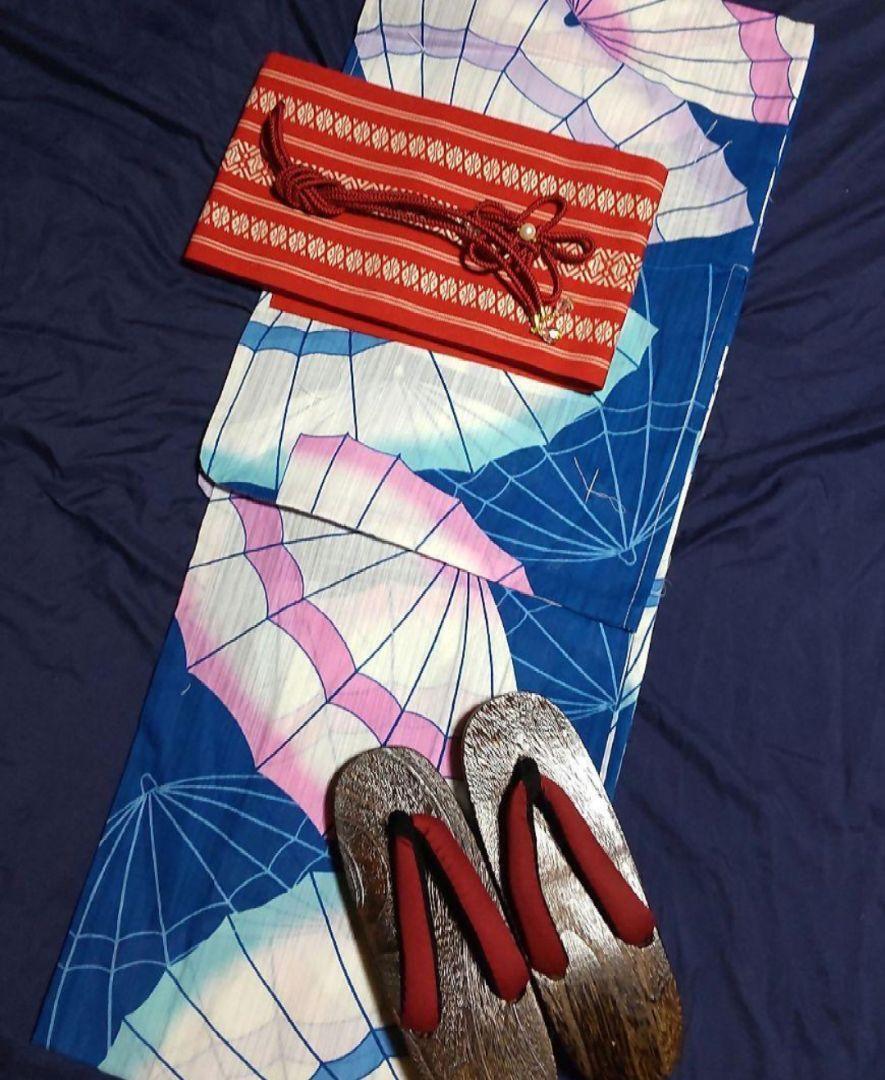 帯は+1000円で赤系、青系、赤系、桃色系の半幅帯か兵児帯、