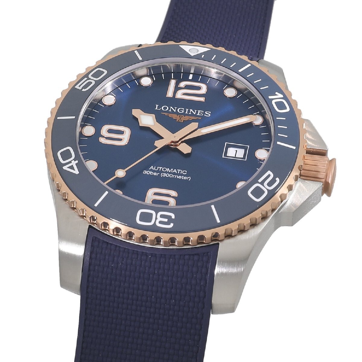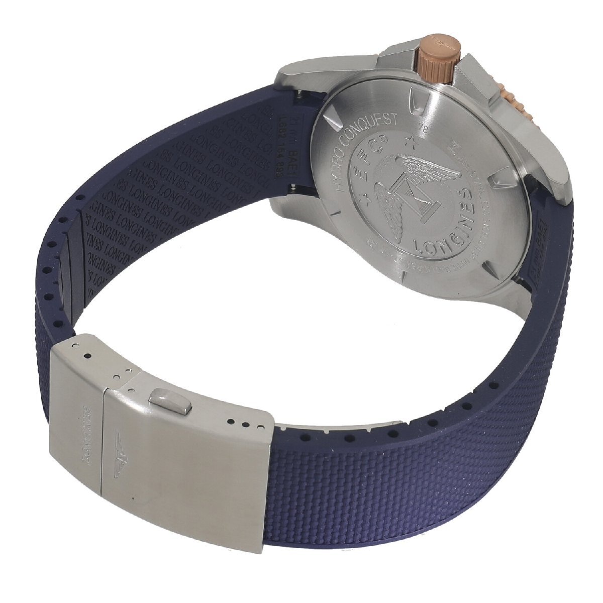 モデルについて | ロンジンのダイバーズウォッチコレクションとなる、ハイドロコンクエストシリーズ。ダイビングの世界に色彩豊かなパフォーマンスがコンセプト。300メートル防水を備えるハイスペックモデルです。ベゼルディスクには傷が付き難いセラミックを採用しています。ベゼルの外周とリューズ、各針やインデックスの縁にはローズゴールドPVDが施されており、スタイリッシュでありながら高級感のある本格的なダイバーズウォッチに仕上がっています。 |