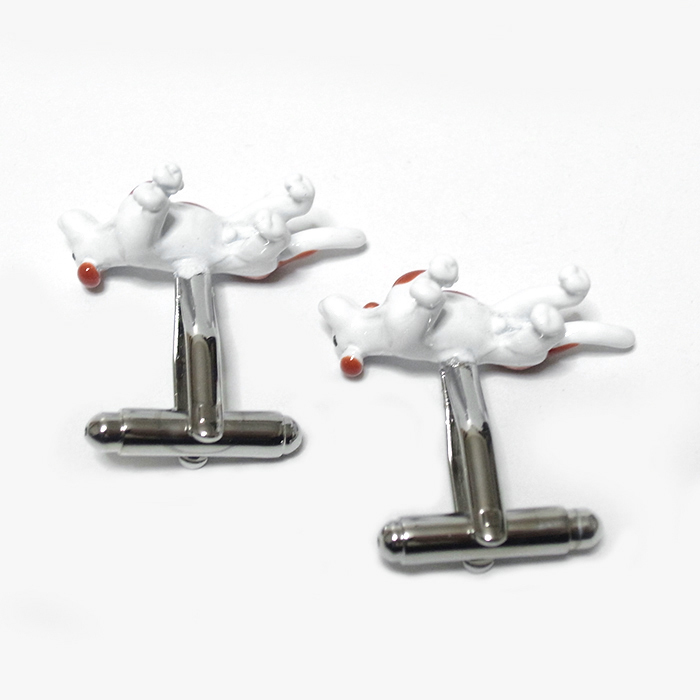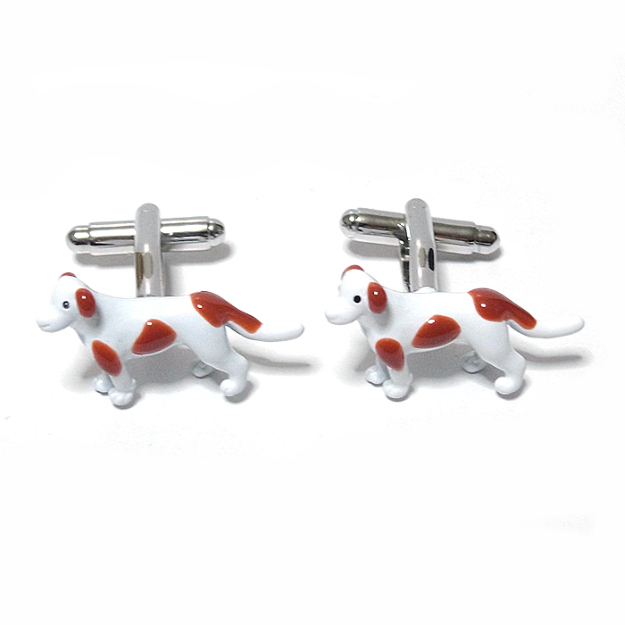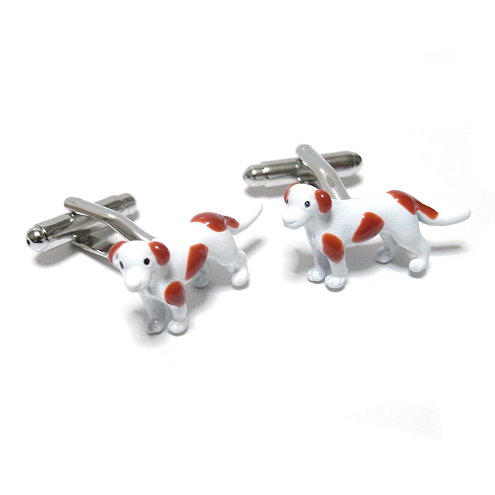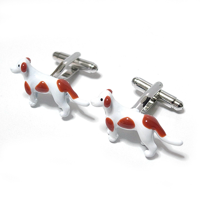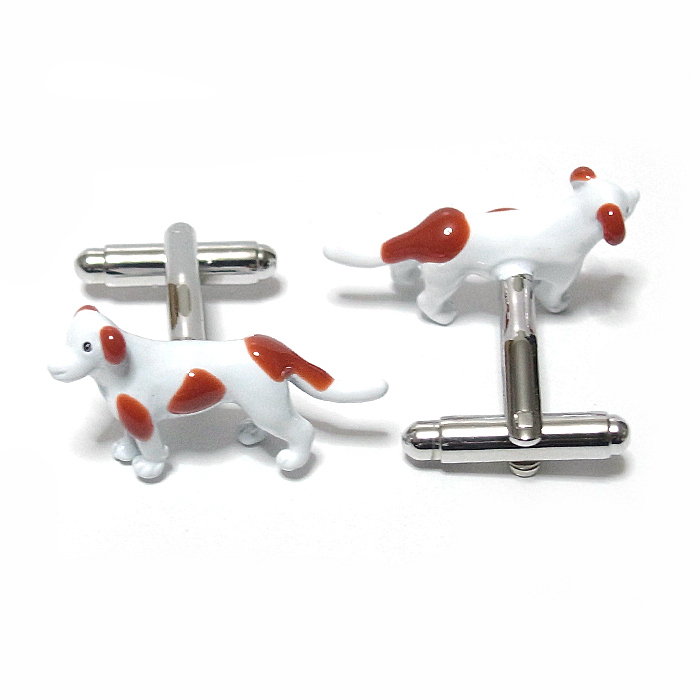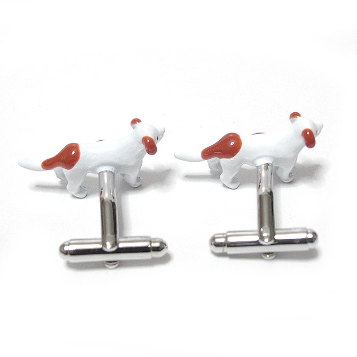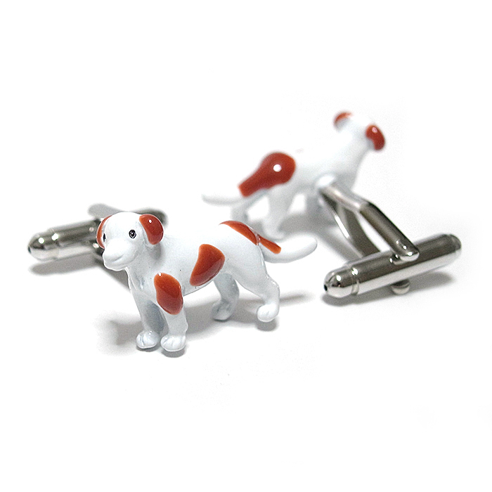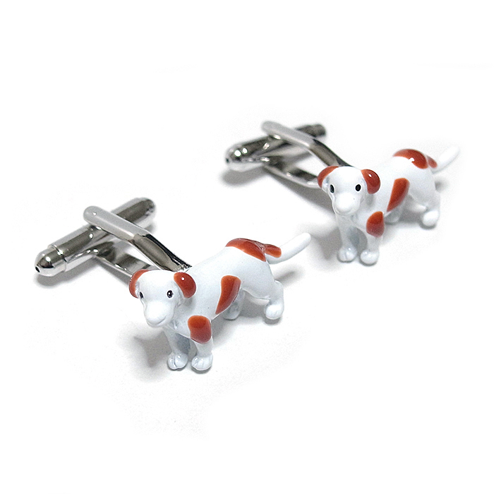 【カフス ボタン/カフリンクス】犬★イヌ★ドッグ★愛犬★ペット★ワンちゃん★かわいい★白★茶色★スーツ/cuf-0320-2