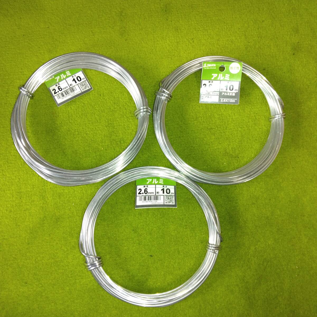 タイトル「YAHATA アルミ針金 加工性 2.6×10m 線径2.6mm 長さ約10m 使用荷重13kgf 3巻セットで」。