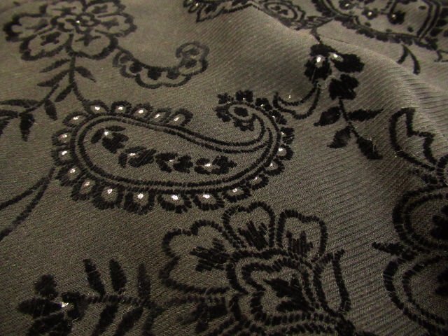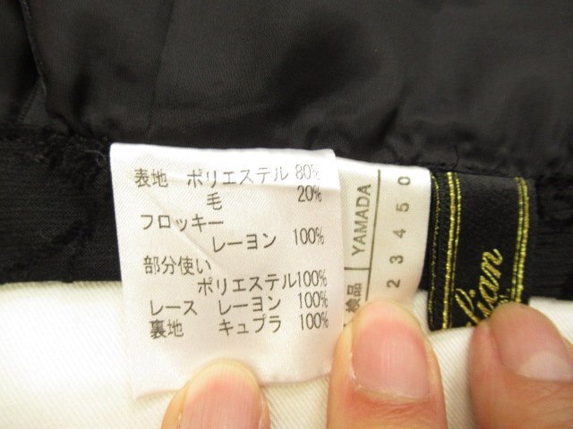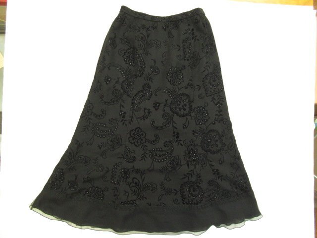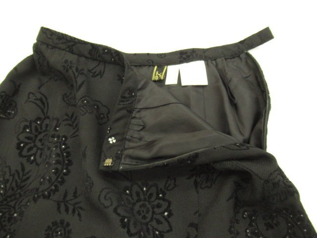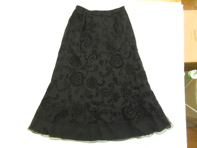 【色】 黒ベースで柄の中に小さなシルバーの点有り 【サイズ】 表記:7 メジャー採寸: 約 ウエスト31.5 丈76 【素材】 ポリエステル80 毛20 フロッキー:レーヨン100 部分使い:ポリエステル100 レース:レーヨン100 裏地:キュプラ100 【付属品】 なし 【参考定価】 -円 【商品説明】 レリアンの画像のように裾部分にレースが付いていて、花柄とペイズリー柄を組み合わせたような柄模様のスカートです。 -------------------------------------- 【状態ランク】 外観:A 中側:A 【状態説明】 ・特に目立つような汚れはありません。 ・目立たない程度の小さな汚れ等はご了承下さい。 |