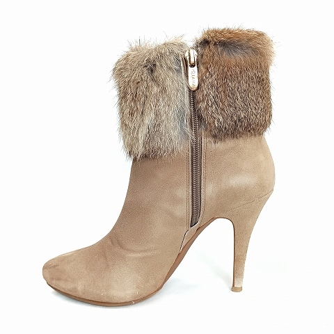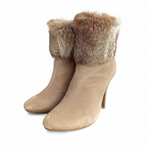 ダイアナ DIANA ラビットファー ショートブーツ ブーティ 23 1/2 茶 ブラウン レディース