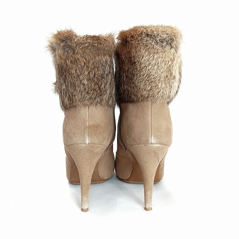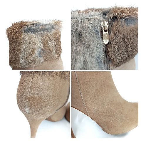 【状態】・部分的に色褪せや汚れが見られます。 ・ファー部分に保管の際付いた癖がございます。 ・ヒール部分に多少の減りが見られます。 多少の使用感はありますが、まだまだご使用いただける商品です。 ※あくまでも中古品ですので掲載写真や記載内容をご確認いただき、ご理解の上ご購入ください。