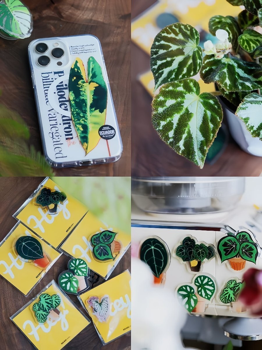 ベゴニア・マクラータ アクリル 冷蔵庫マグネット 熱帯植物 観葉植物 希少 インテリア プレゼント 海外