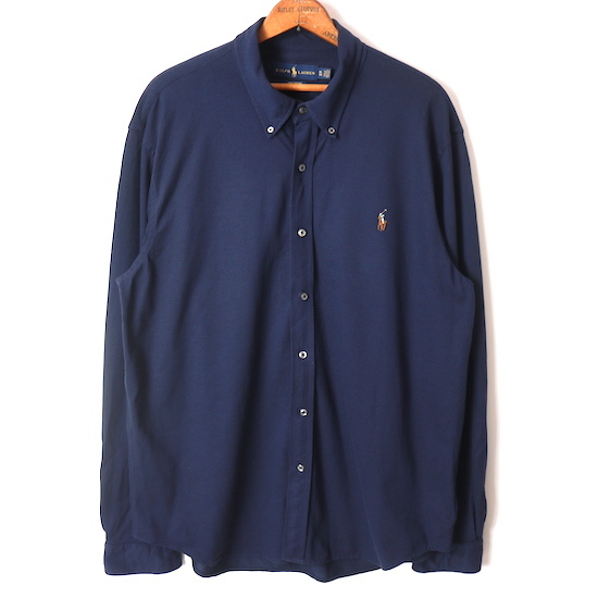RALPH LAUREN ラルフローレン KNIT OXFORD 長袖 ボタンダウンシャツ(メンズ XL)ネイビー