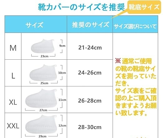 | 商品説明 | TPE靴防水カバー シューズカバー突然の雨や雪でもさっと装着でき、大切な靴を守ってくれます。梅雨対策、通勤通学、釣り、洗車、雪道、自転車など、濡れた歩道、キャンプ場の川辺、登山道様々なシーンで使えます。最新改良-滑り止めTPE素材】通常のシリコン製のシューズカバーとは異なり、この靴カバーは特殊なTPE素材でできており、滑りやすく、破れやすいという問題を改善することに専念しています。高品質の非毒性で、環境に優しいのTPE素材、使用時の安全性と耐久性を保証します。【滑り止め靴底-厚くて硬い】厚くて硬い靴底——滑り止め効果アップ!シューズの底部分にはでこぼこの滑り止めがデザインされているため、水たまりの道や泥道でも滑りにくいのが特徴です。すべりにくいTPE素材を使用することで、従来のシリコンシューズカバーにくらべて、マンホールやタイルの上でもすべりにくくなりました。 【強力な伸縮性+履きやすい+完全防水】厚みがあり、耐摩耗性が高く。着脱簡単、破れにくい、繰り返して使えます。間口が広いので、すんなり着用でき、脱ぐのも速いです。シームレスな一体成型でつくられています。隙間から雨水が靴に浸透することはありません。完全防水の靴カバーは、雨や汚れから靴を保護します。 ◆素材: TPE ◆色:ブルー ◆サイズ:L [適応靴サイズ目安 (24cm~26cm)] |