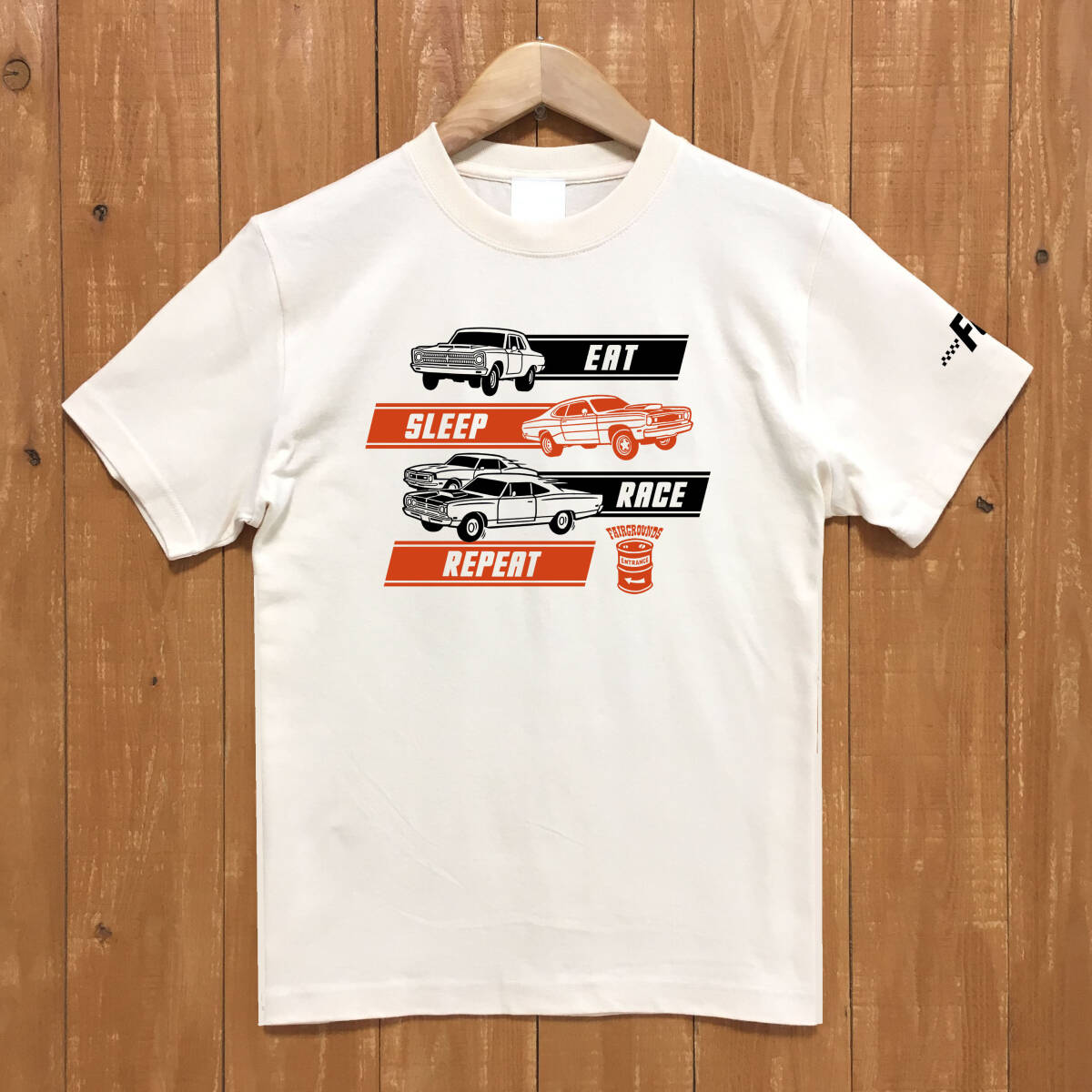 ■REPEAT RACE Tシャツ■Sサイズ(アイボリーxブラック・オレンジ)アメリカ アメ車 モパ- ロードランナ-MOPAR PLYMOUTH