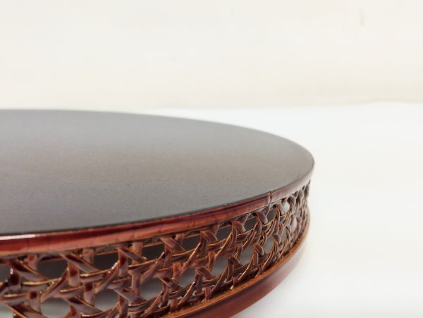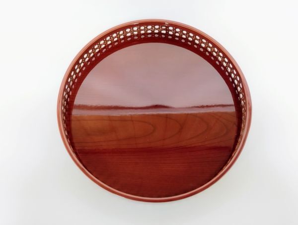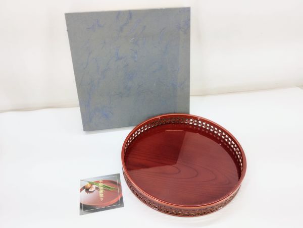 サ/ 春慶塗 網代盆 丸盆 盆 お盆 アジロ 菓子器 茶道具 箱付き /HY-0901