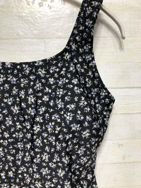 ・タンキニ上下(バストカップ取り外し可):黒系小花柄
