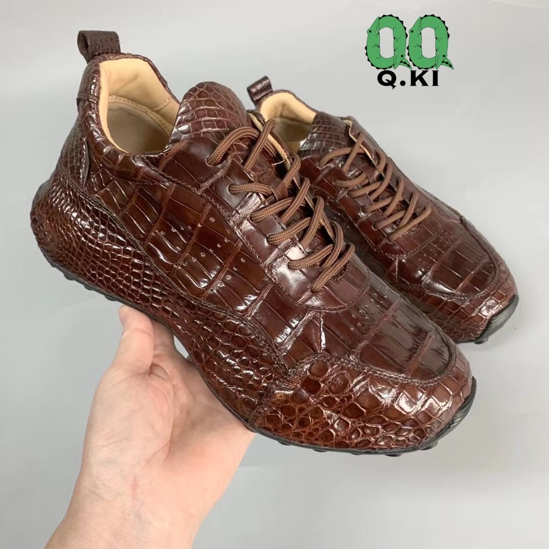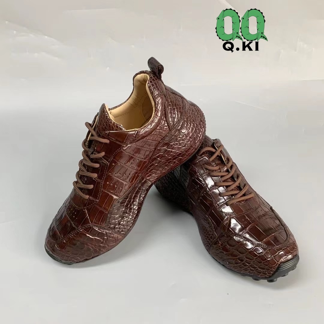 クロコダイルレザー メンズ 革靴 軽量 ワニ革 スニーカー レザーシューズ ウォーキングシューズ 鰐革保証 スポーツシューズ26.0/26.5/27.0