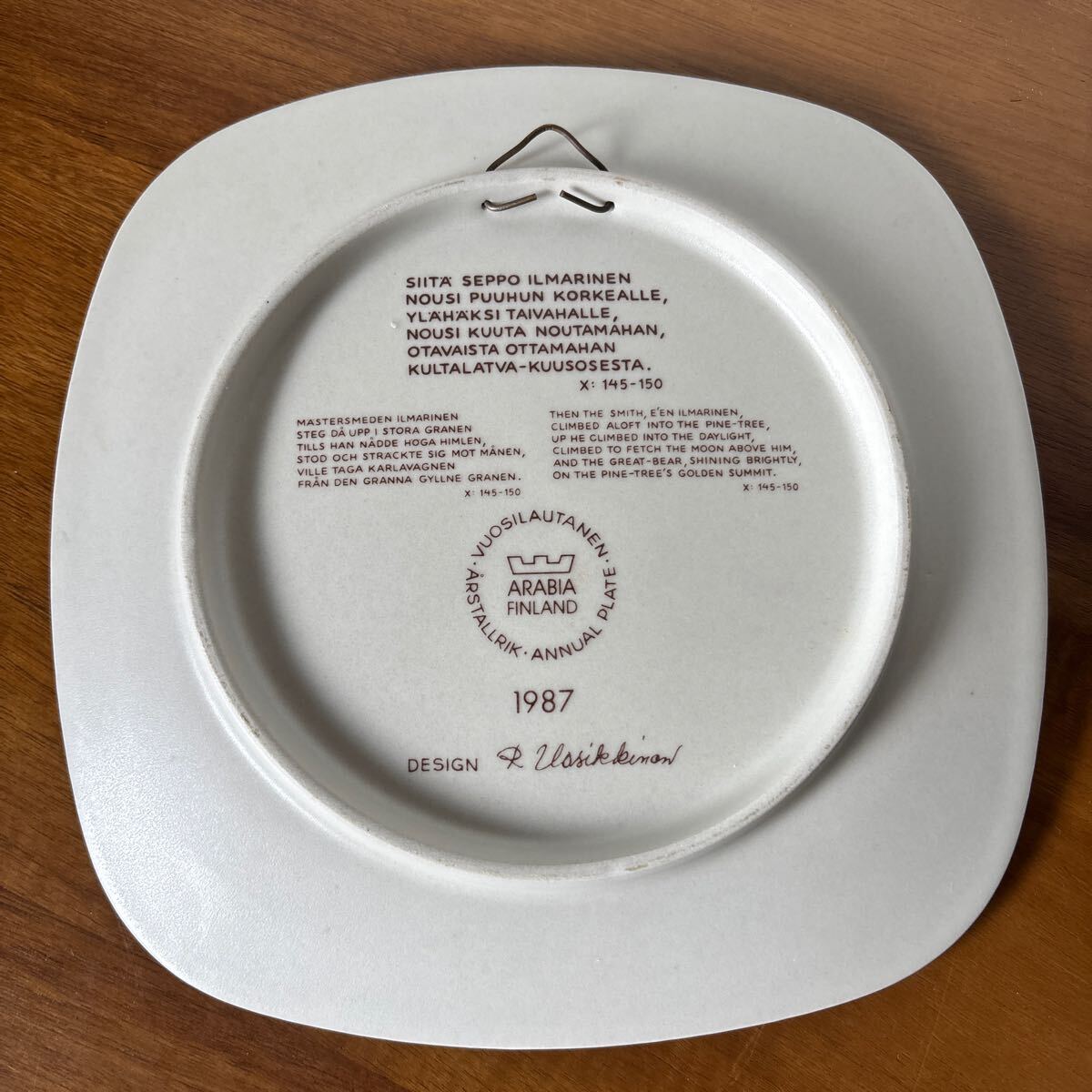 Arabia アラビア カレワラ イヤープレート 1987年 ライヤ・ウオシッキネン Raija Uosikkinen