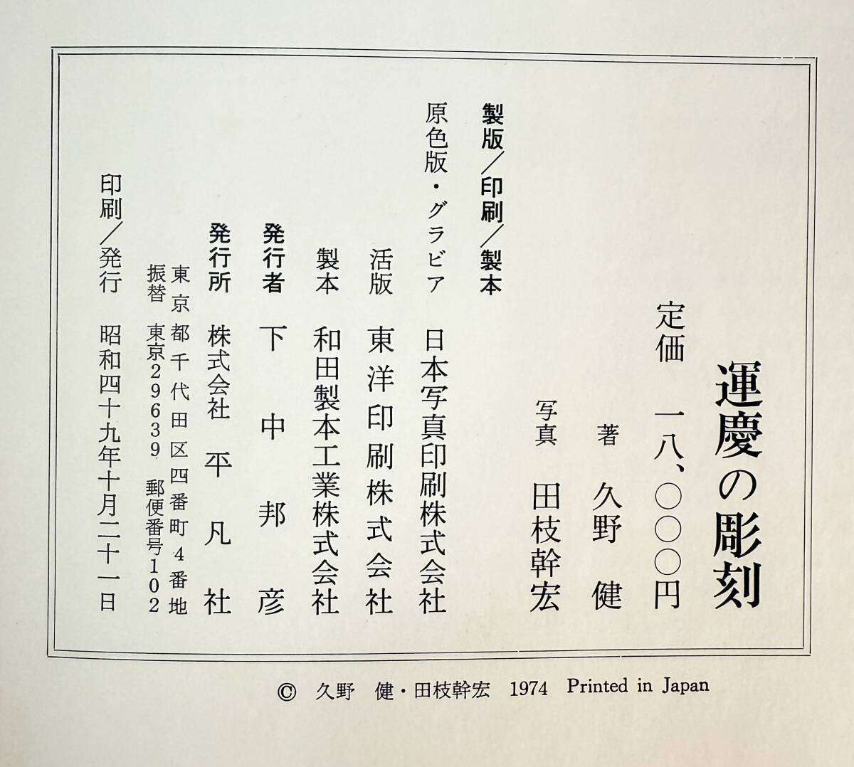 『運慶の彫刻』久野健 田枝幹宏 昭和49年 仏師運慶の傑作106点掲載した一冊 仏像 仏教美術 木彫 古本