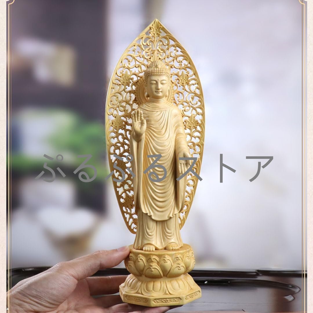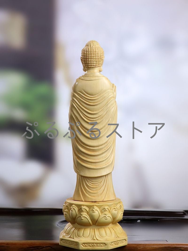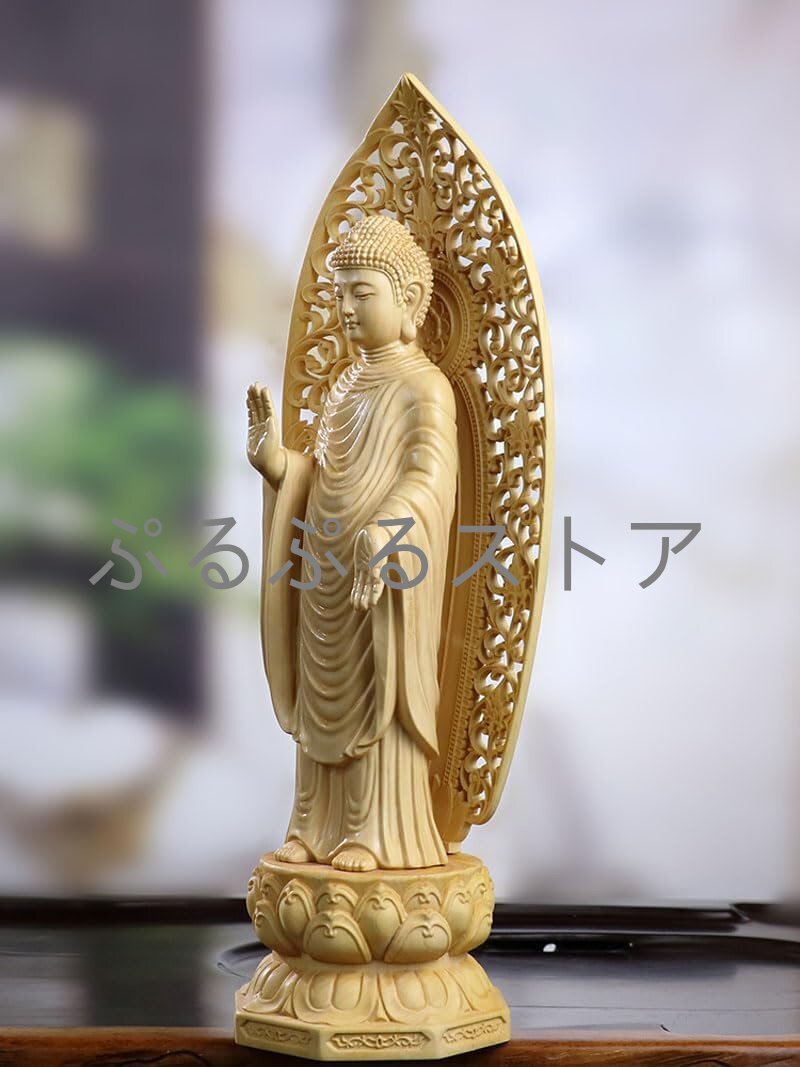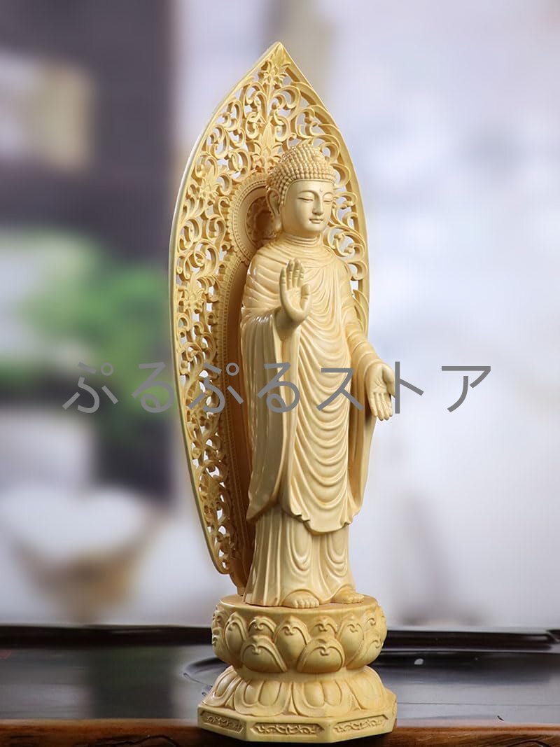 木彫り仏像【阿弥陀如来立像】23cm 柘植彫刻(戌・亥年生まれ)十二支守り本尊 干支 唐草光背 浄土宗/御本尊