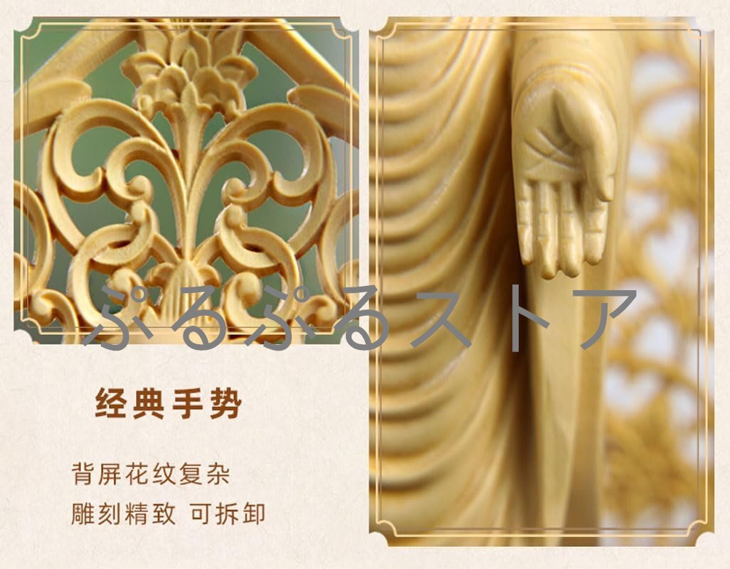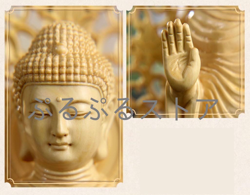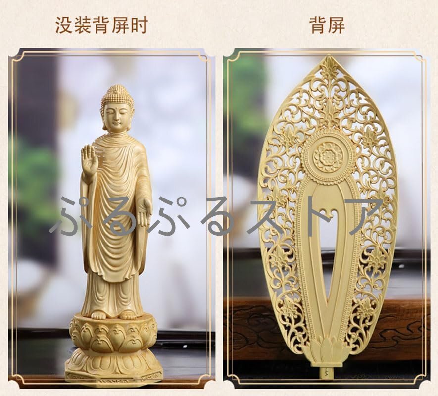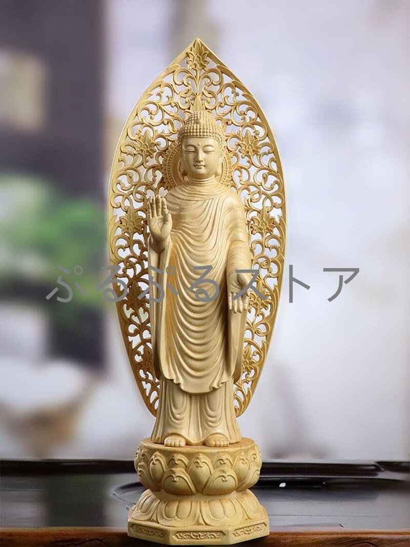 木彫り仏像【阿弥陀如来立像】23cm 柘植彫刻(戌・亥年生まれ)十二支守り本尊 干支 唐草光背 浄土宗/御本尊