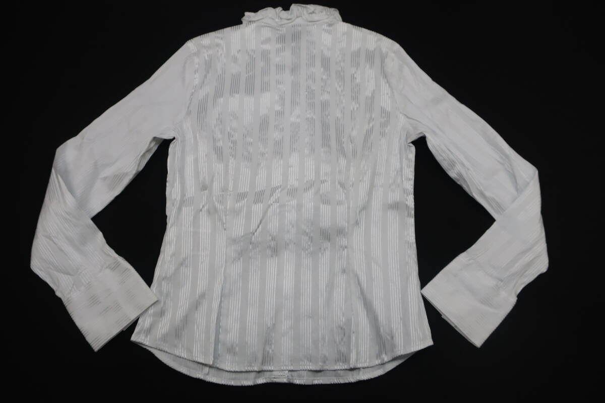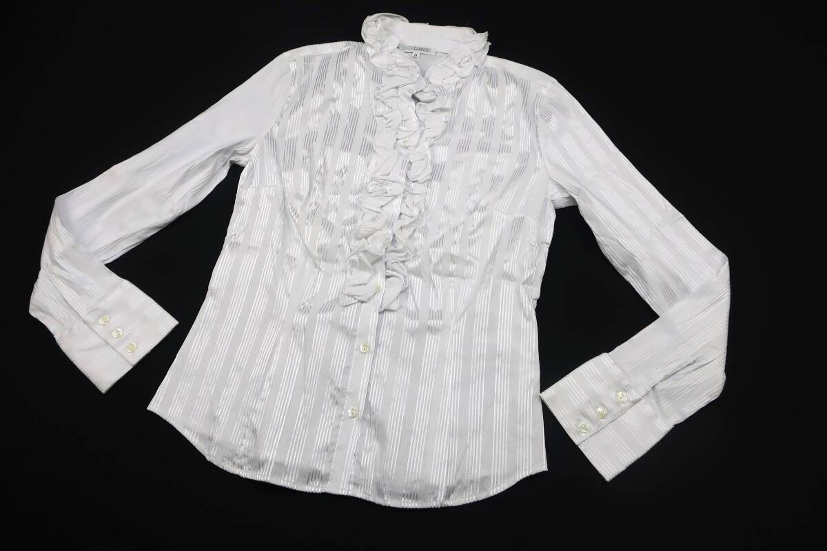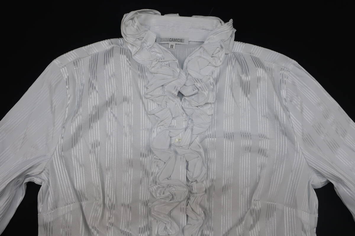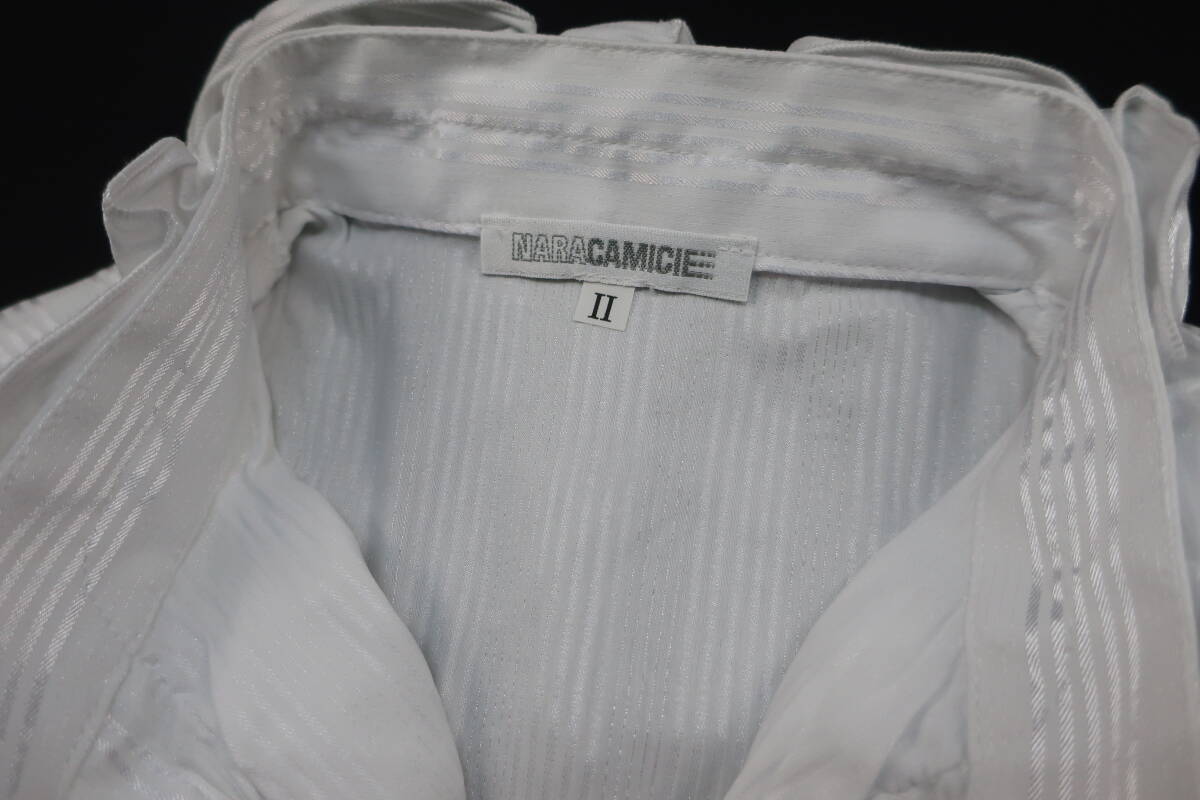 【送900円】8638 最終 NARACAMICIE ナラカミーチェ ストライプフリルシャツ 白×シルバー 長袖 開襟 クロアチア製 コットン他 Ⅱ