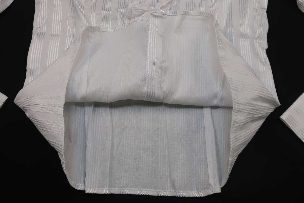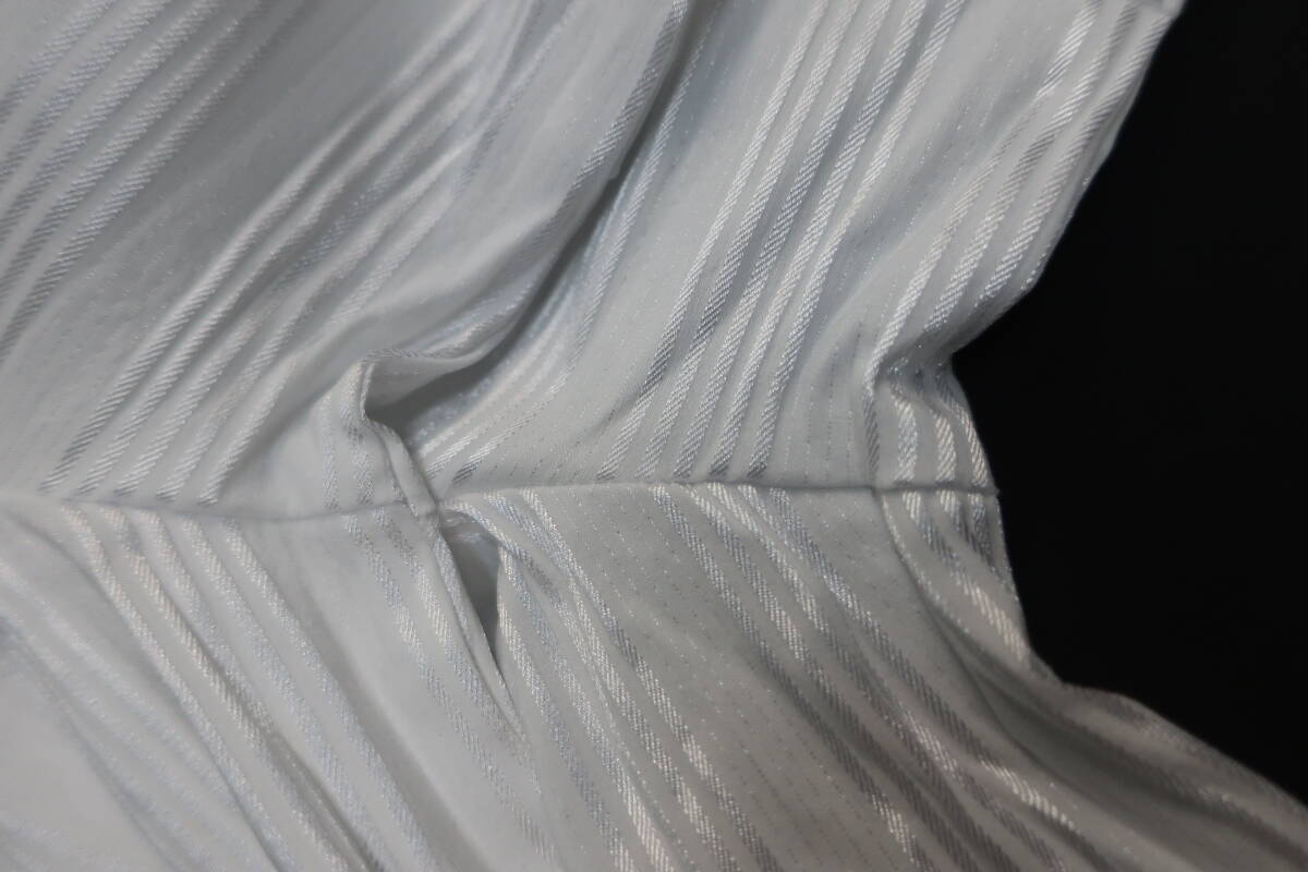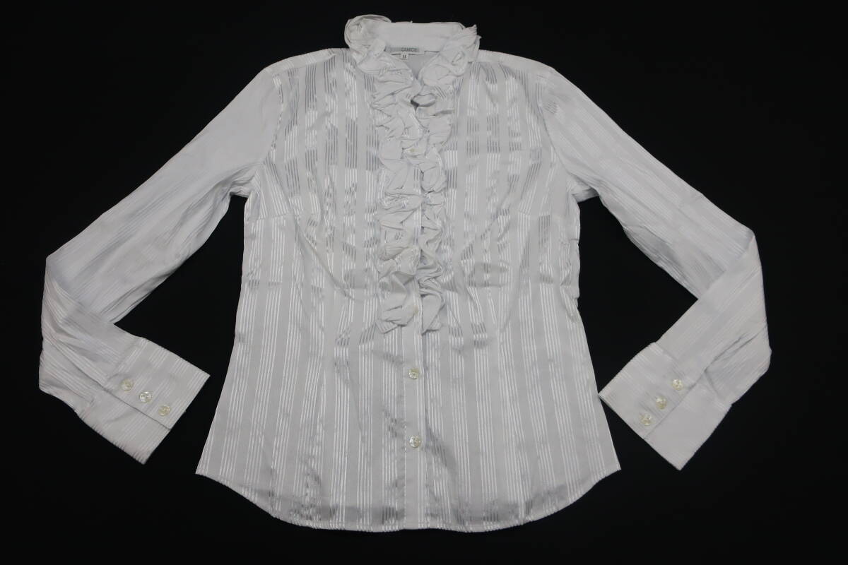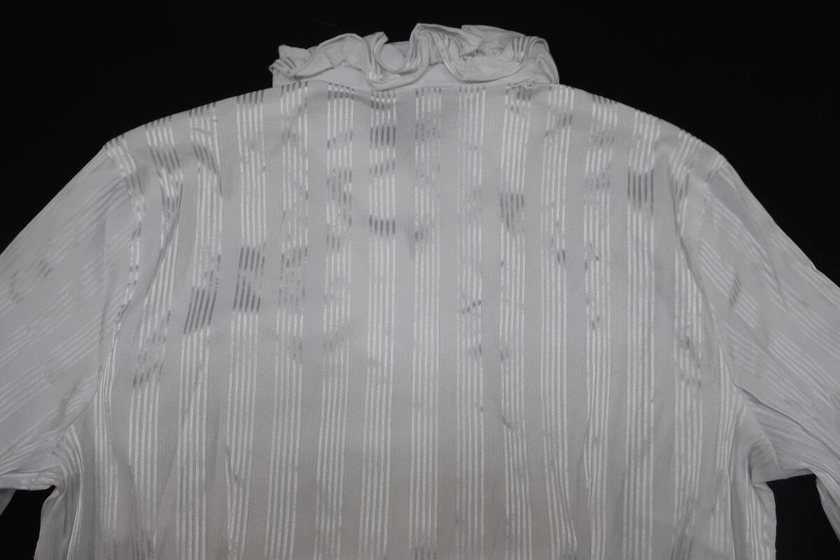 【送900円】8638 最終 NARACAMICIE ナラカミーチェ ストライプフリルシャツ 白×シルバー 長袖 開襟 クロアチア製 コットン他 Ⅱ
