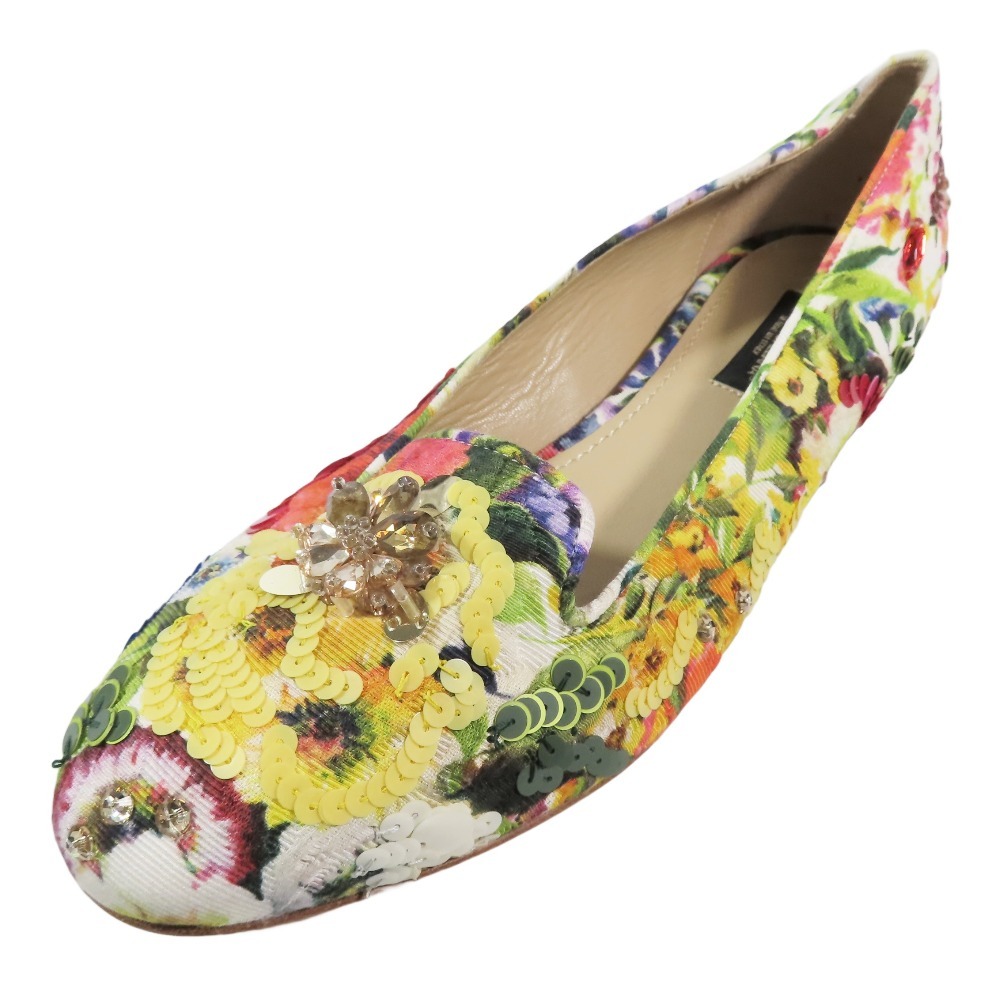 未使用 DOLCE&GABBANA ドルチェ&ガッバーナ フラット バレエシューズ パンプス フラワージャガード 花柄 スパンコール ビジュー 36