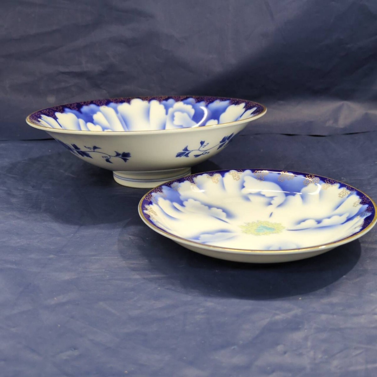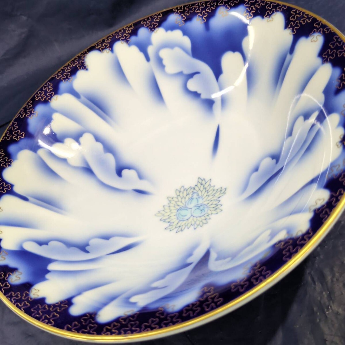 品名: 深川製磁 牡丹金ミル 盛り鉢 瑠璃色 宮内庁御用達 食器 AT1.51