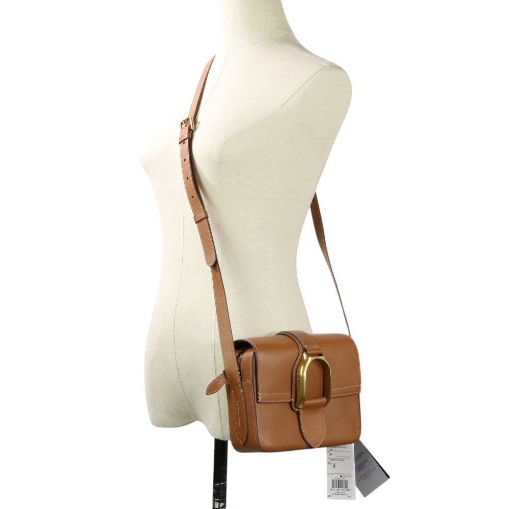 新品同様 Ralph Lauren ラルフローレン カーフスキン ウェリントン レザー ショルダーバッグ クロスボディバッグ 652003 ブラウン