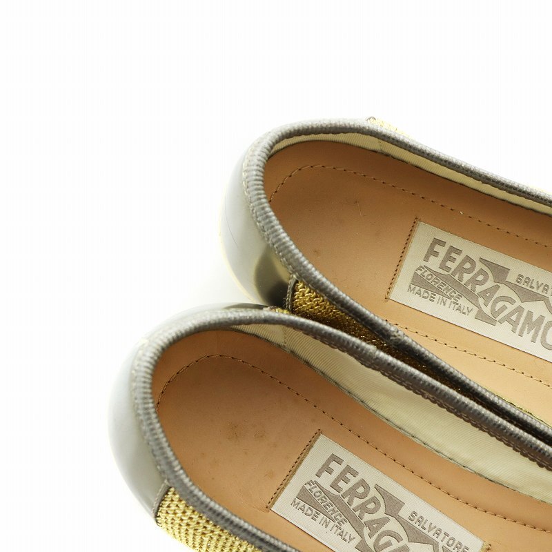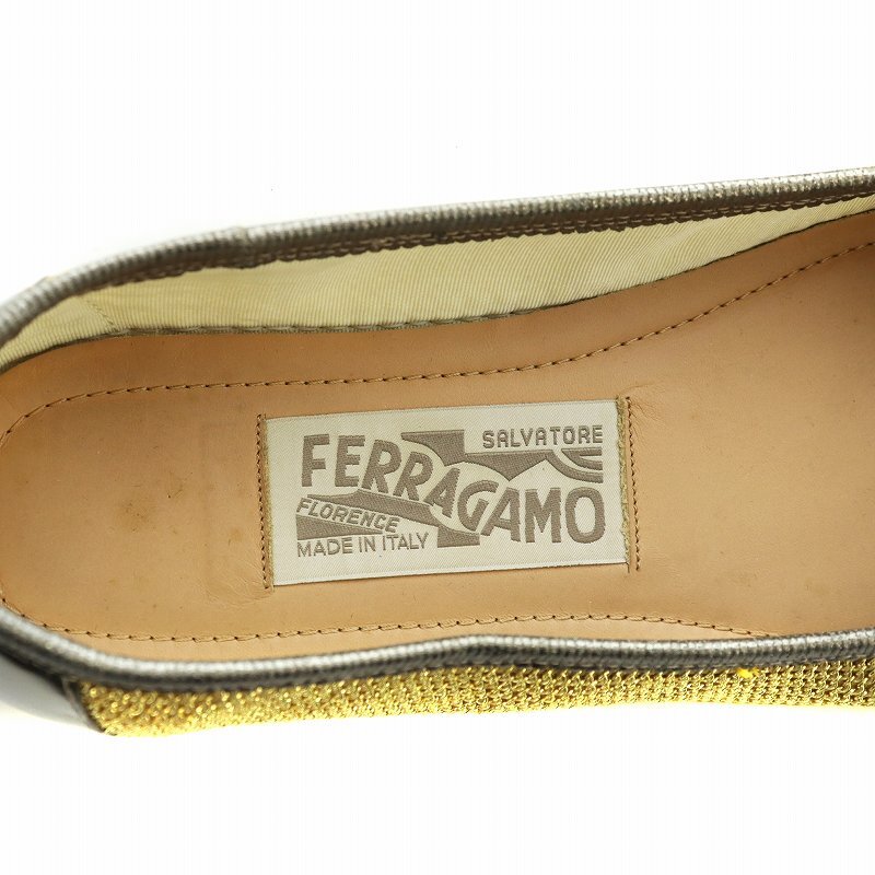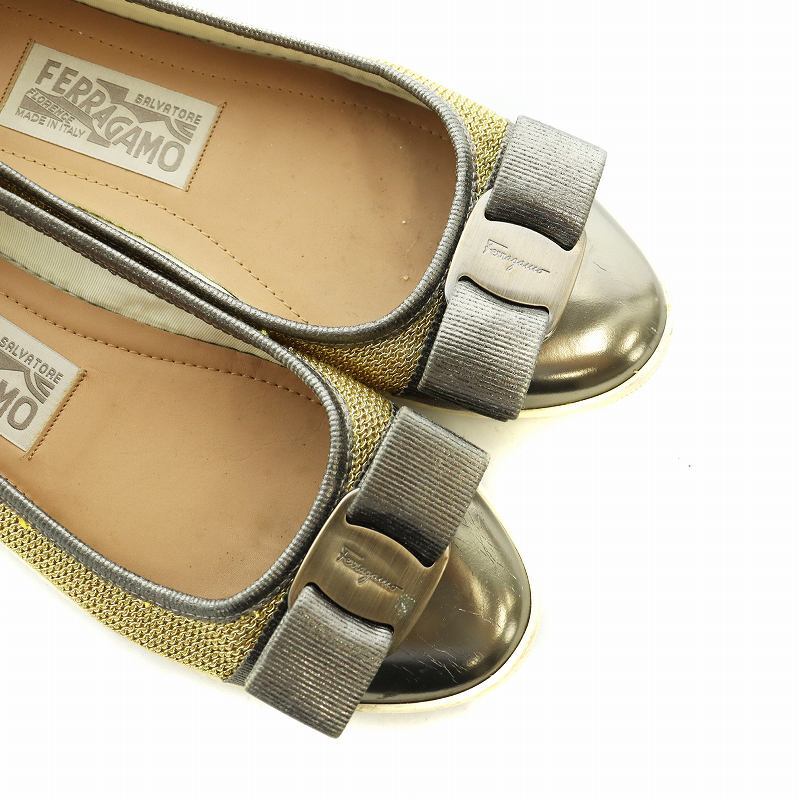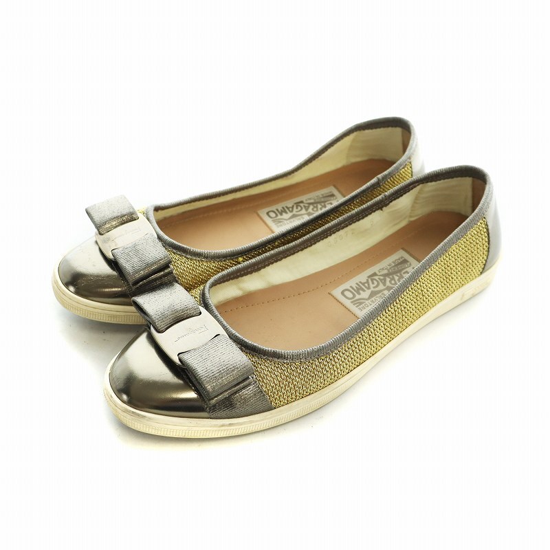 サルヴァトーレフェラガモ Salvatore Ferragamo ヴァラ VARA パンプス フラットシューズ リボン ロゴ グリッター 5 22cm