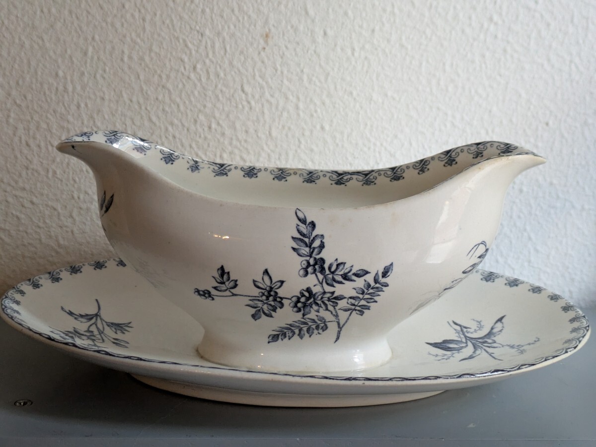 フランスブロカント購入 アンティーク Sarregumines サルグミンヌ U&C Vega ソーシエール ソース入れ 1900年前後 海外発送 (送料3200円)