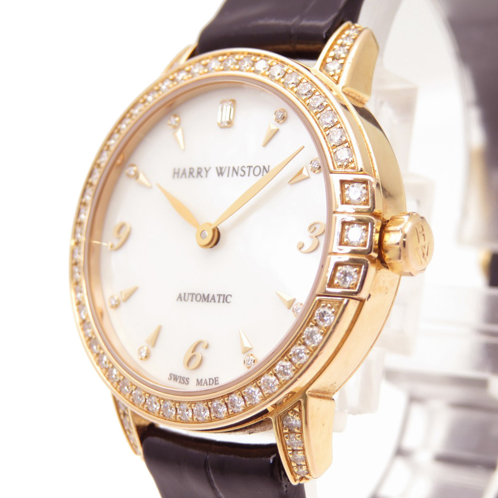 美品 ハリーウィンストン ミッドナイト K18PG ダイヤベゼル MIDAHM29RR001 自動巻き 腕時計 ピンクゴールド/ダイヤモンド/レザー 1178