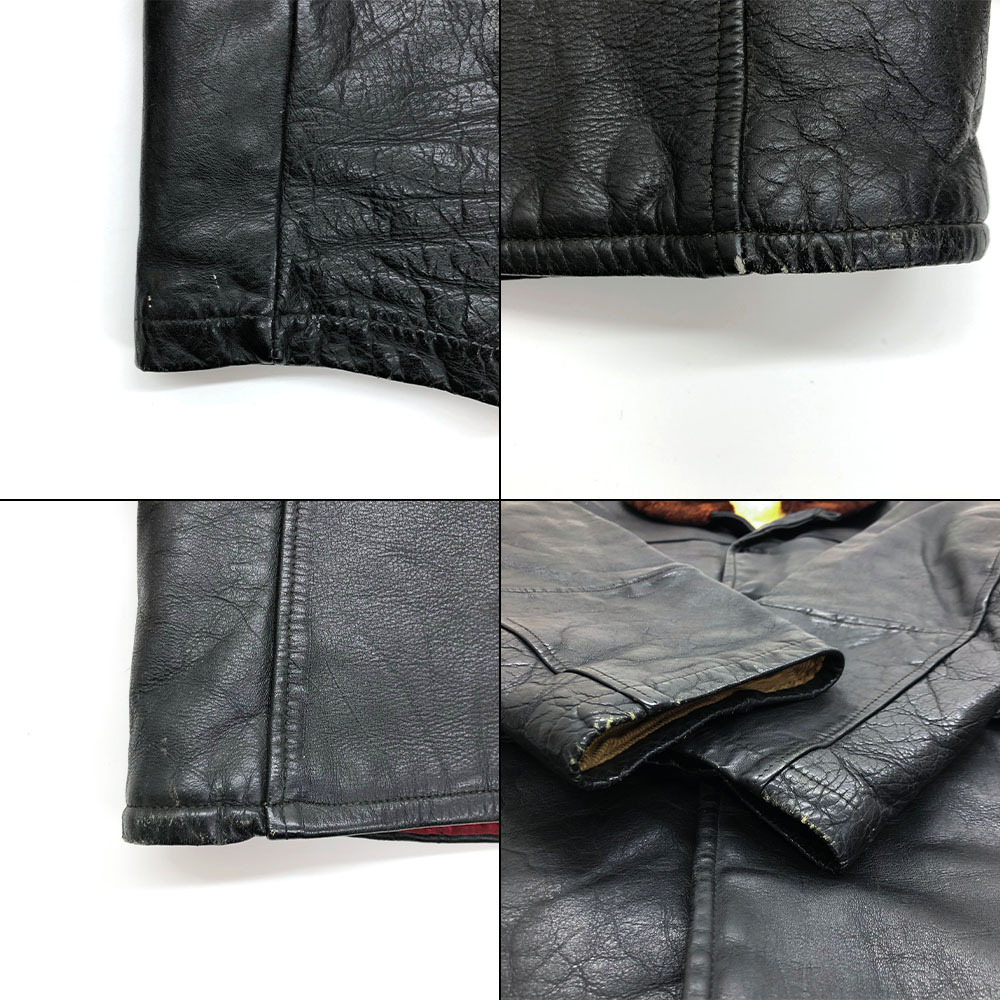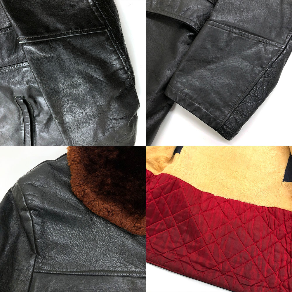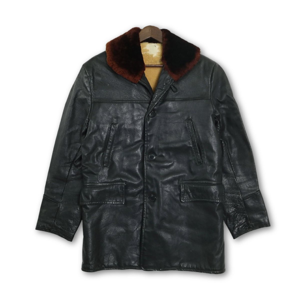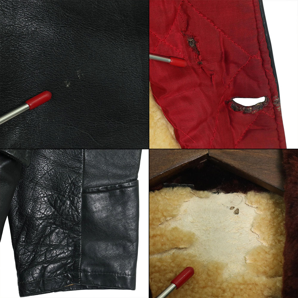 ・全体に汚れと擦れ ・内側ボアに欠損あり ご着用に支障はございません。 ショールカラー(ヘチマ襟)のクラシカルなディテールと重厚なレザーの風合いが際立つヴィンテージカーコートです。 経年による味わい深さを楽しめる一着です。 | |