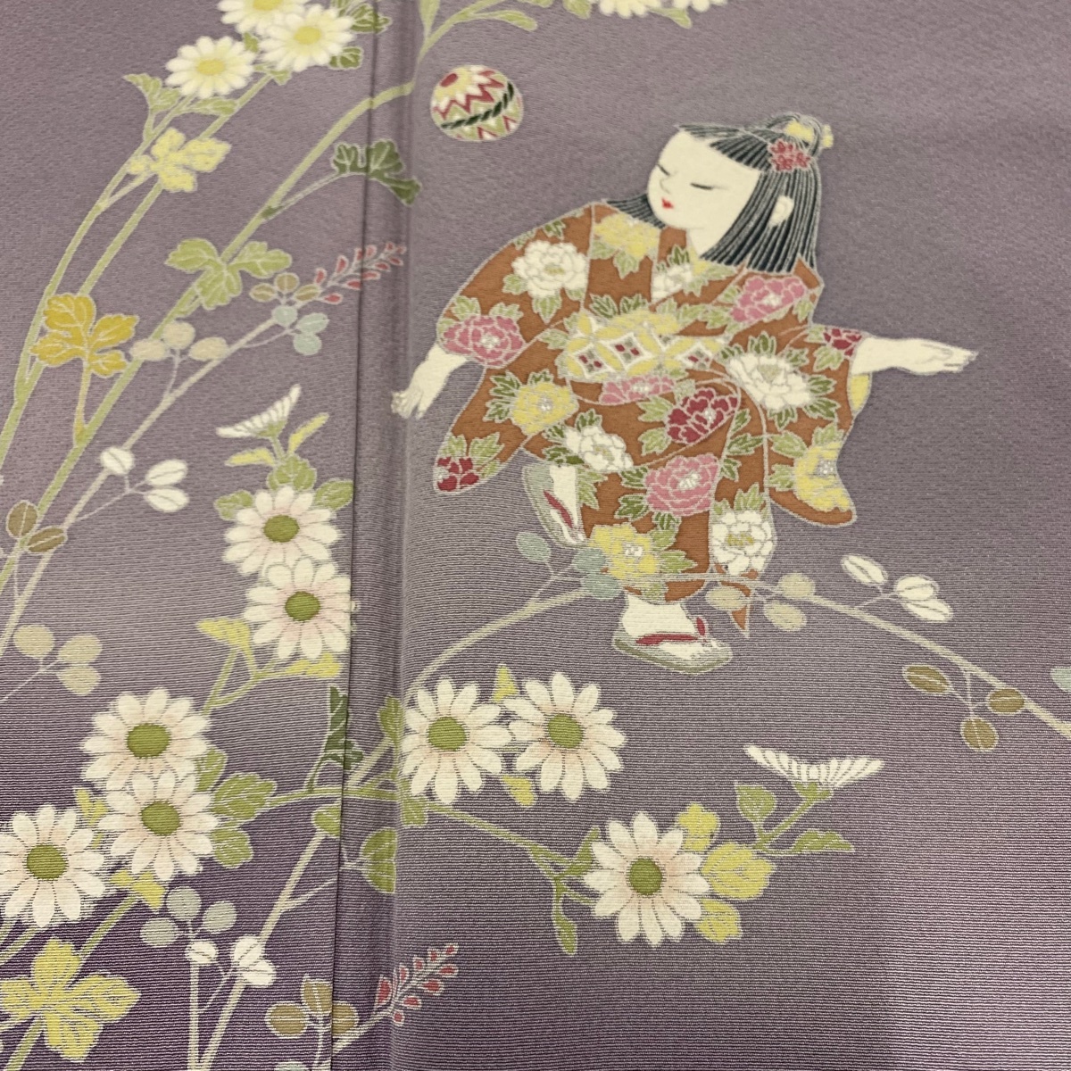付下げ 秀品 落款 童 菊 ぼかし 薄紫 袷 身丈158.5 裄丈68.5 L 正絹 【中古】 |