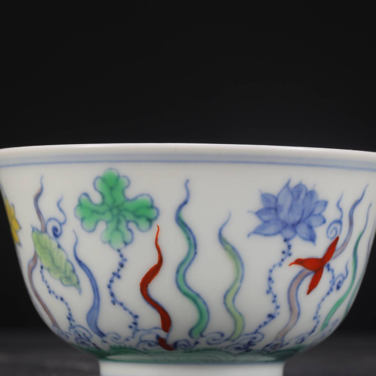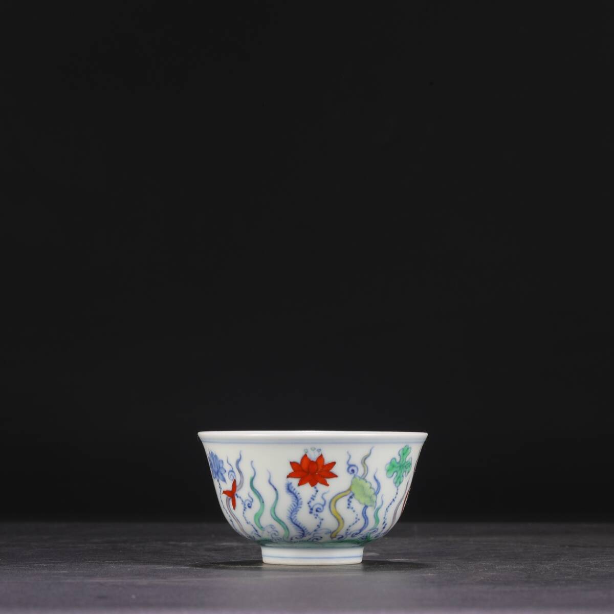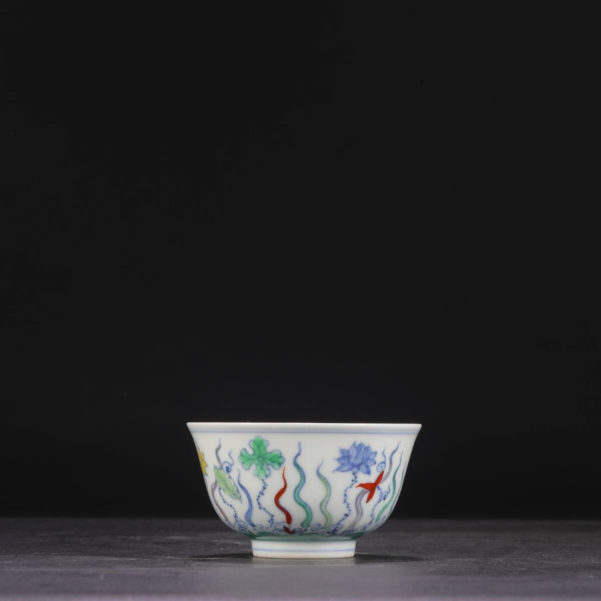 明代 成化斗彩水藻紋杯 高さ5㎝ 口径9㎝ 古美術 RG1131