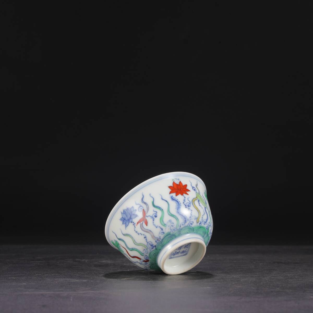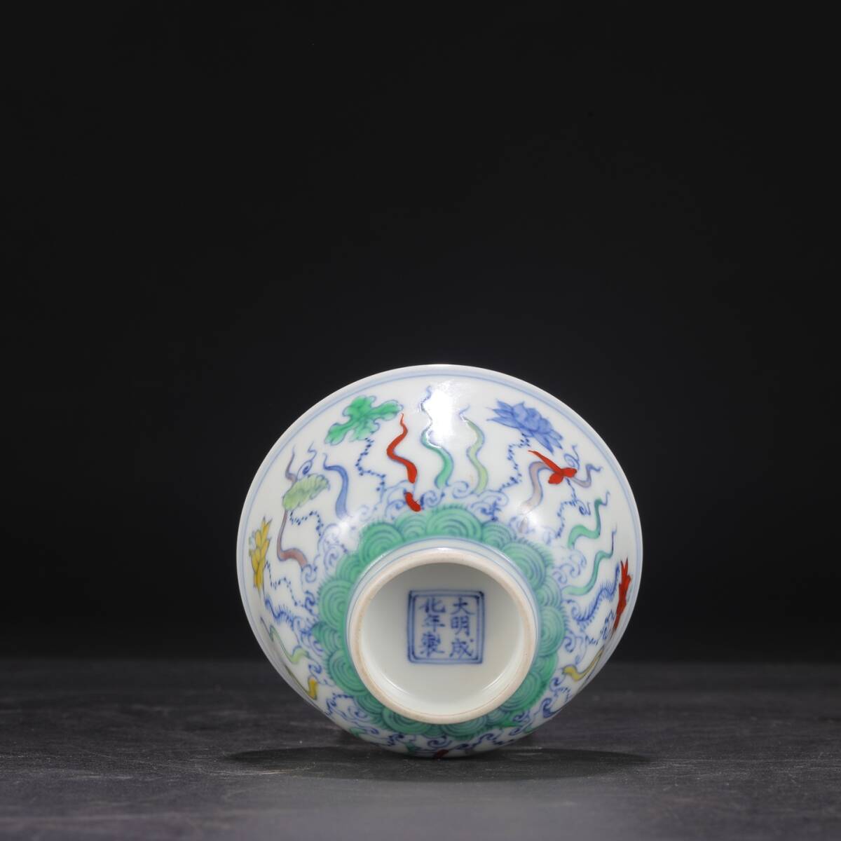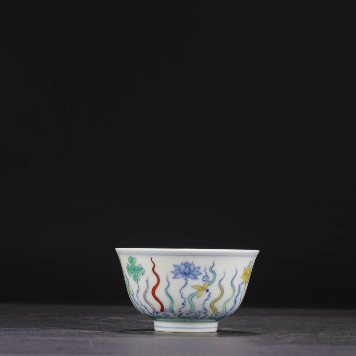 明代 成化斗彩水藻紋杯 高さ5㎝ 口径9㎝ 古美術 RG1131