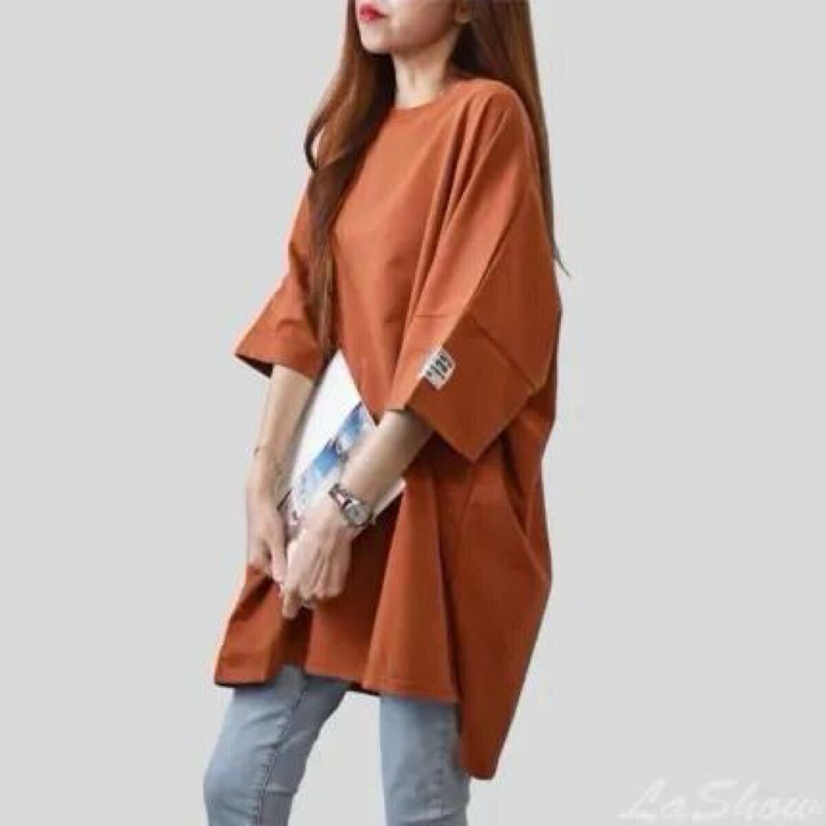 肩幅~袖丈がゆったりとしたデザインで落ち着いたカラーのトップスで着回しやすい1枚です。