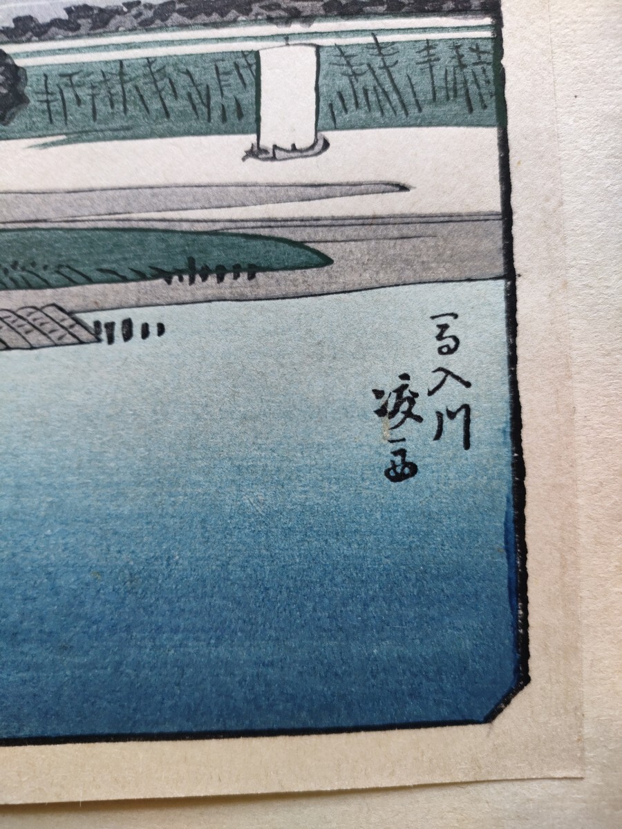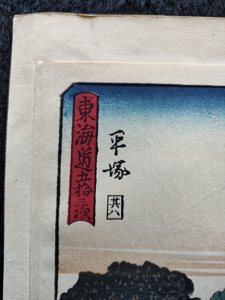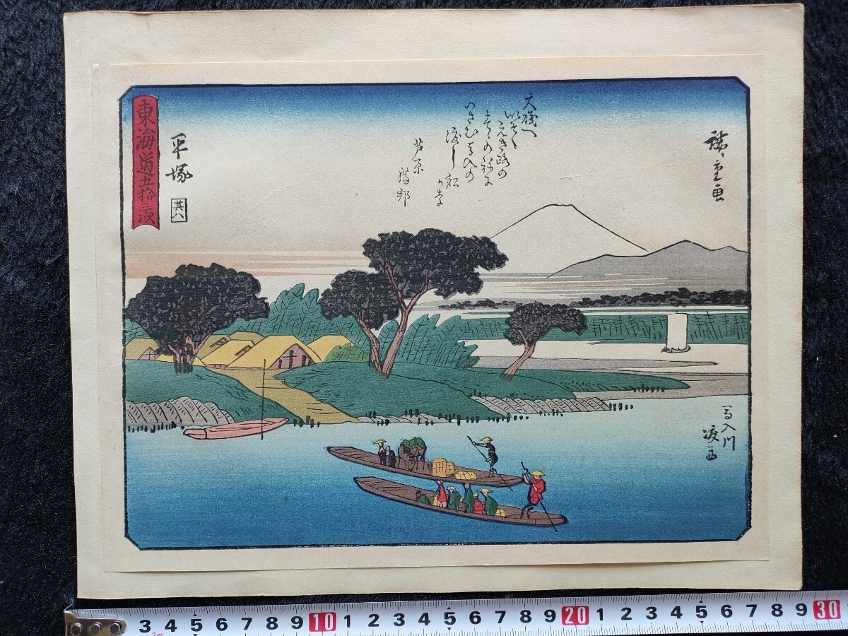 【真作】本物浮世絵木版画 歌川広重【東海道五十三次 平塚】中判 錦絵 保存良い 裏打ち